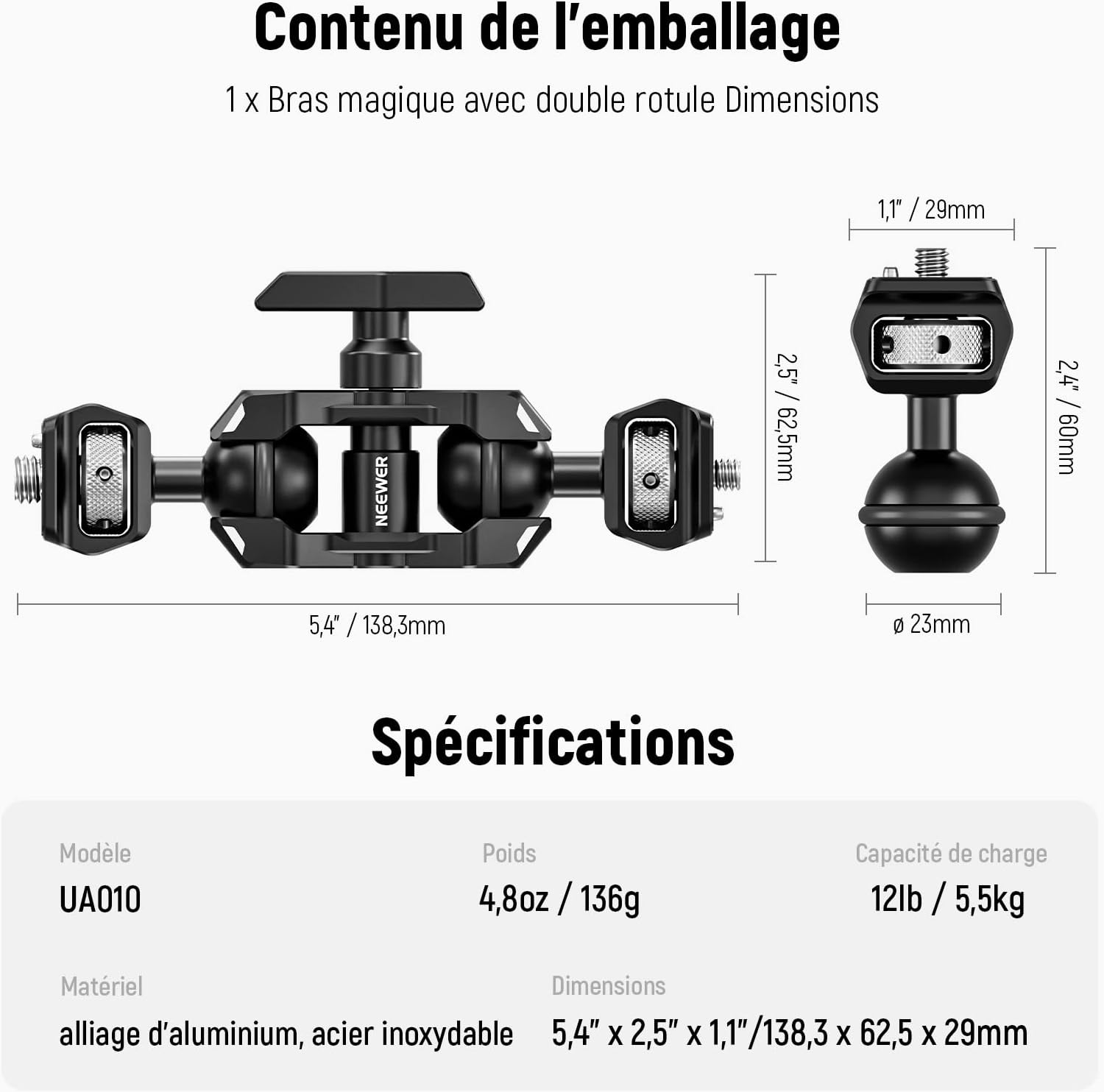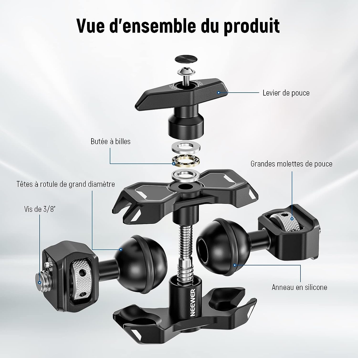 NEEWER UA010 Bras Magique Articulé avec Vis 3/8" et 1/4" et Pin de Positionnement ARRI
