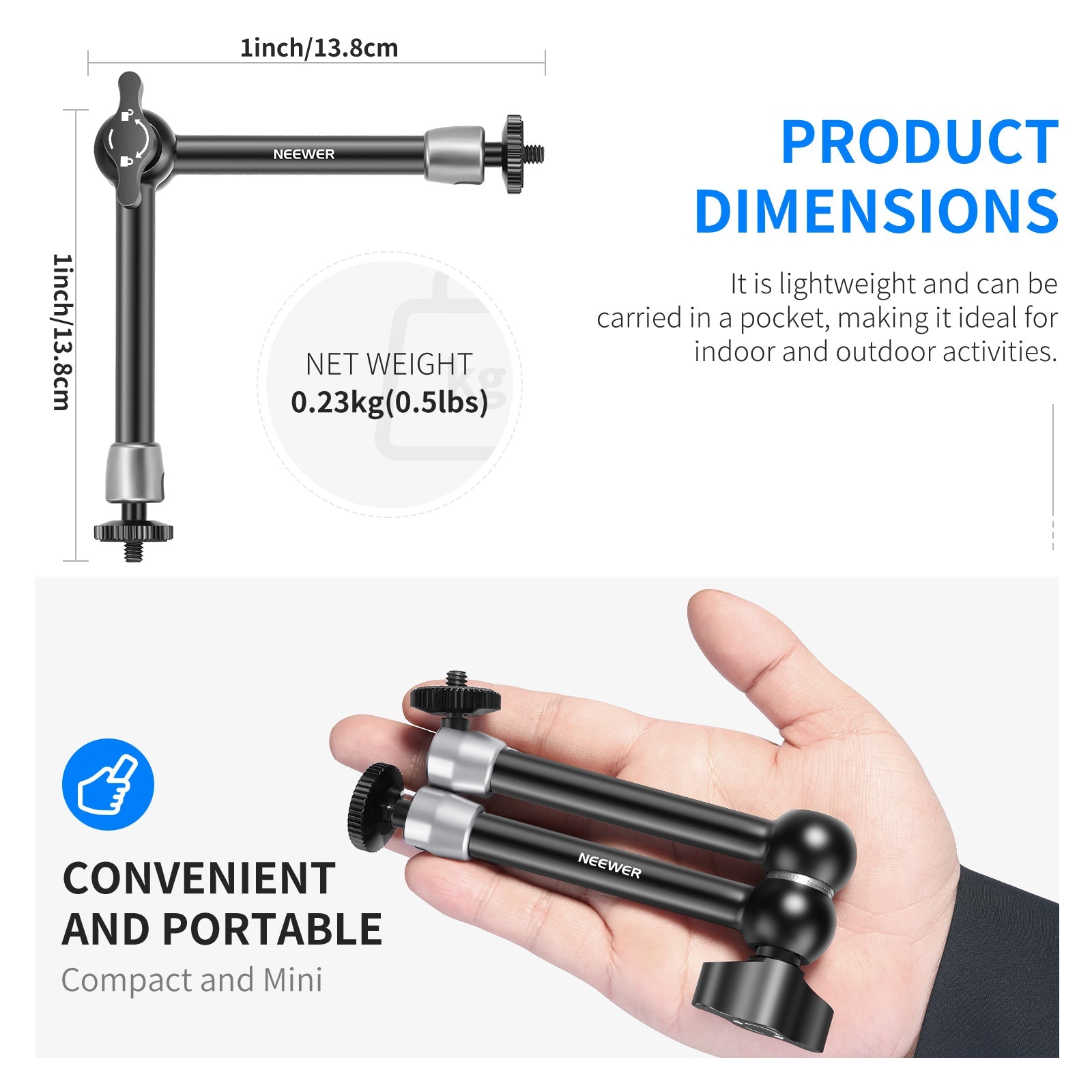 - Compact et Léger: ne pèse que 0,4 lb / 0,18 kg, le bras magique est léger et pratique à transporter dans une poche, parfait pour l'événement intérieur et extérieur; 5,9 pouces / 15 centimètres de longueur avec une capacité de charge maximale de 4,4 lb / 2 kg