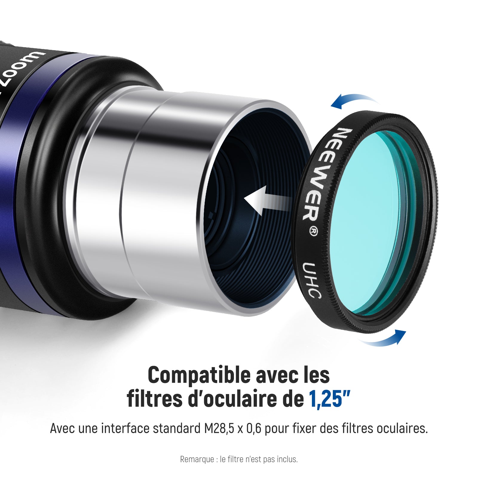 - 【Oculaire universel de 1,25 pouces】 Compatible avec tout télescope astronomique acceptant des oculaires de 1,25 pouces et adapté à l'observation du ciel, à l'observation des étoiles, à l'observation des nébuleuses planétaires et à d'autres scénarios d'observation