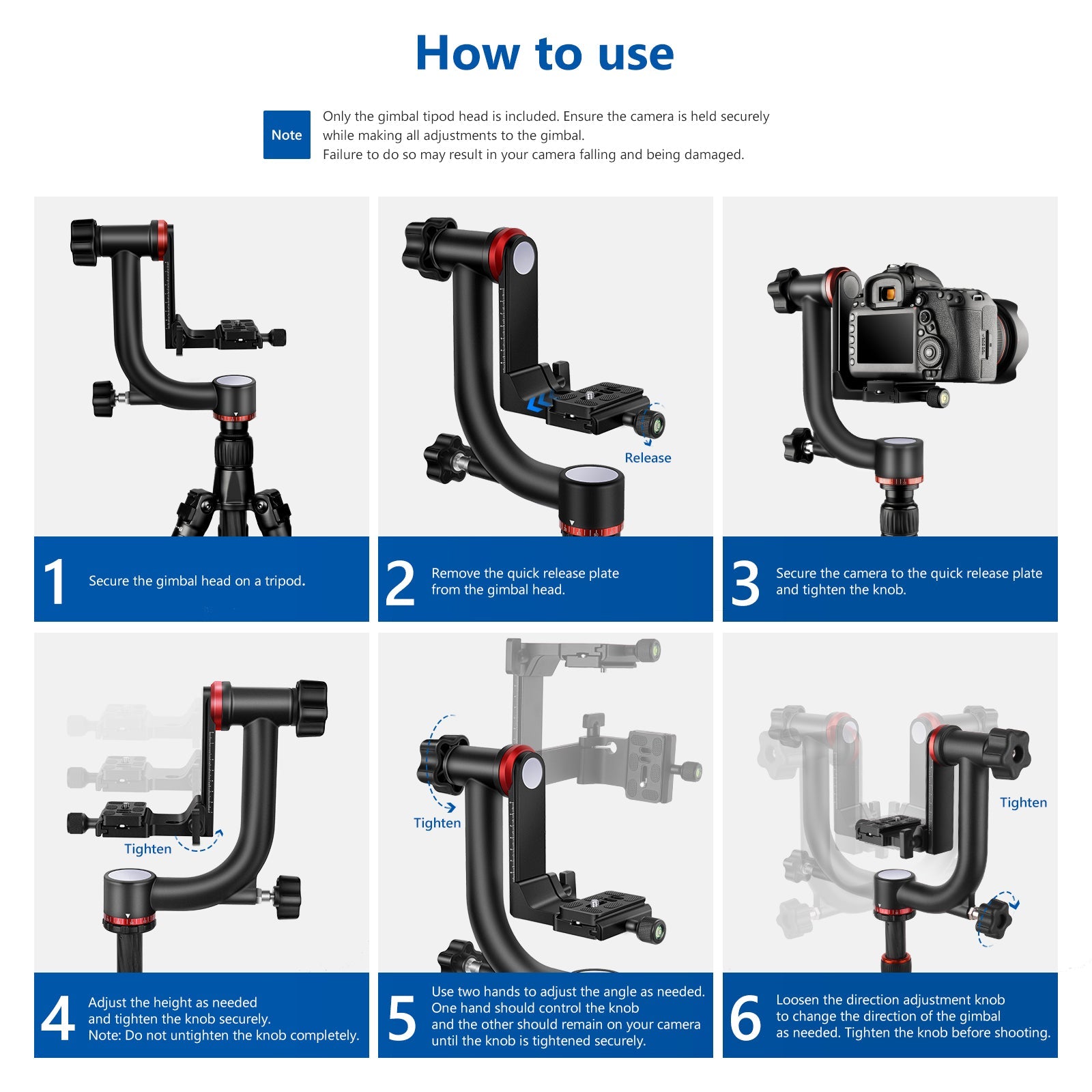 - Mouvement fluide de la caméra avec structure portante- La tête de trépied à cardan équilibre la caméra sur les axes verticaux et horizontaux et vous permet de faire pivoter et de faire pivoter votre caméra avec une grande précision. Construit avec une structure portante, il est plus lisse et beaucoup plus facile à régler. Idéal pour l'observation des oiseaux et les photographes qui souhaitent capturer des images nettes de sujets en mouvement rapide dans la photographie animalière et sportive