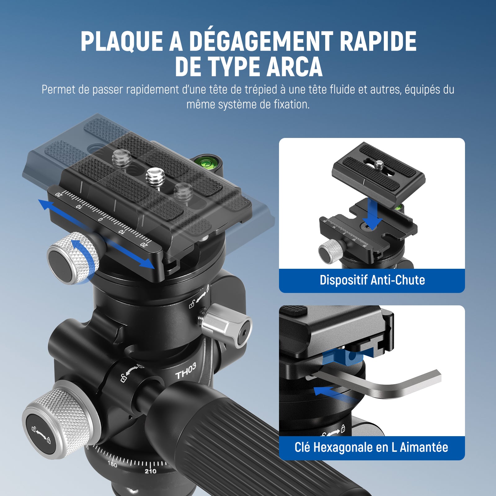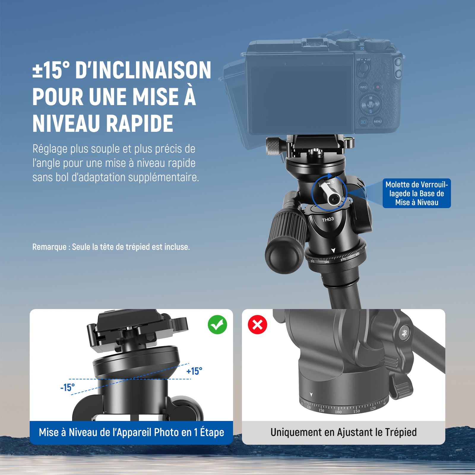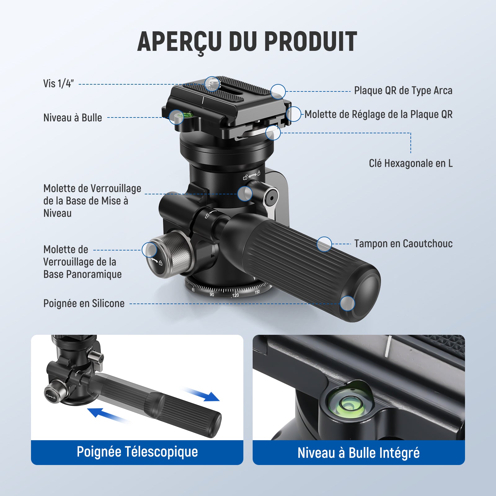 NEEWER TH03 Tête de Trépied Panoramique Inclinable