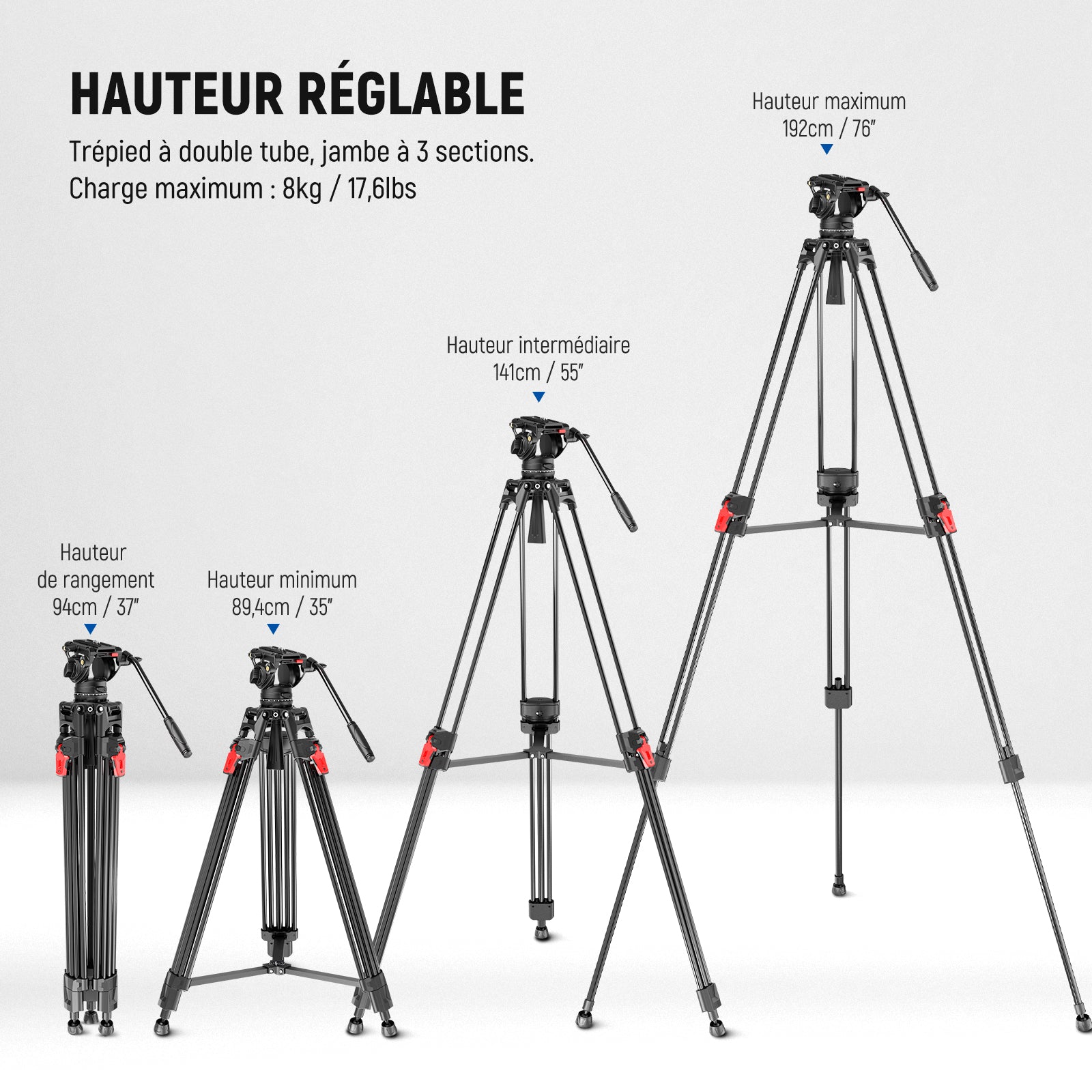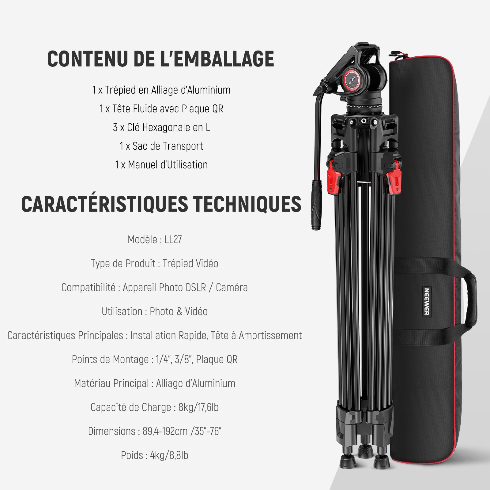 NEEWER LL27 Trépied Vidéo avec Tête Fluide 76"/192 cm