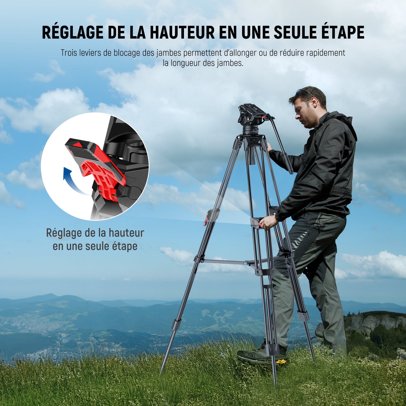 - Construction robuste et utilisation polyvalente : fabriqué en alliage d'aluminium, le trépied vidéo dispose de pieds de trépied multi-tubulaires qui tiennent debout même lorsque vous transportez un appareil photo ou un autre équipement de photographie professionnel jusqu'à 8 kg, idéal pour le sport, les mariages, les paysages et la photographie de produits, l'enregistrement vidéo, le vlogging, le streaming en direct, et plus encore.