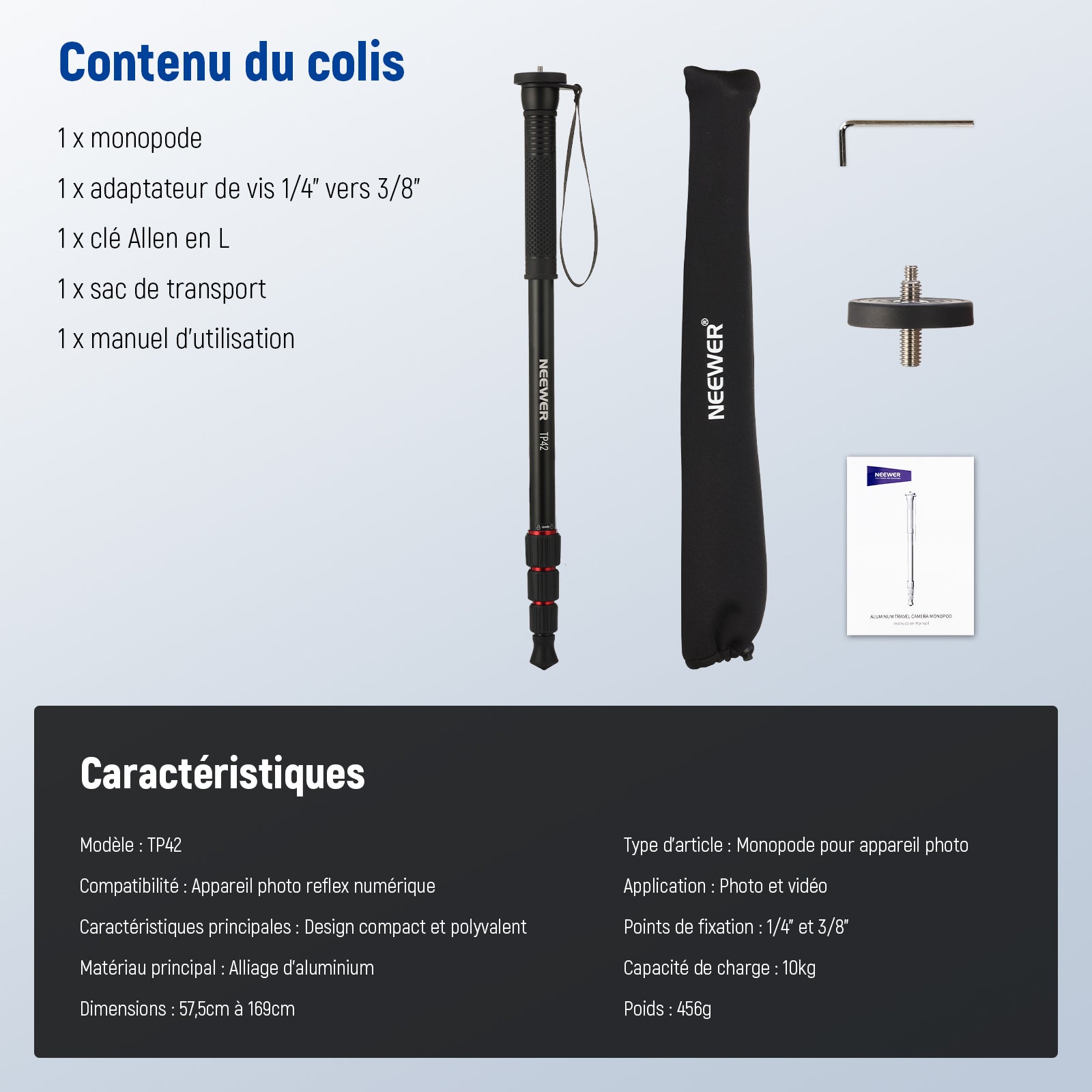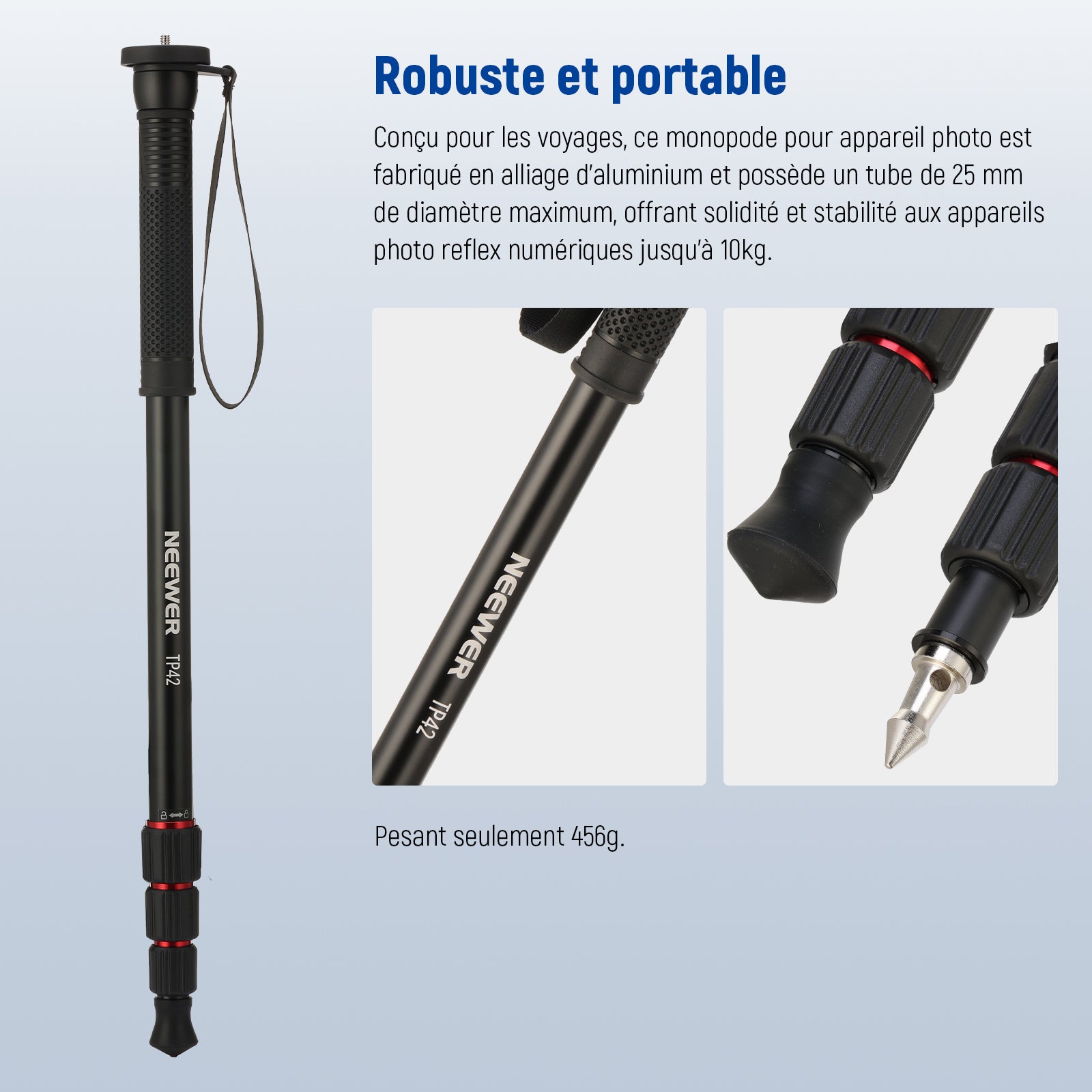 - 【Robuste & Portable】 Conçu pour le voyage, le monopode est fabriqué en alliage d'aluminium avec un diamètre de tube de 25 mm max. pour les caméras DSLR jusqu'à 22lb/10kg.Pesant seulement 16oz/456g, hautement portable, au lieu de trépieds lourds, il sert de bâton de selfie, Le créateur de contenu essentiel et l'influenceur doivent l'avoir pour explorer l'extérieur, le voyage en Europe vlogging, le tournage vidéo, les selfies, ou la capture de paysage