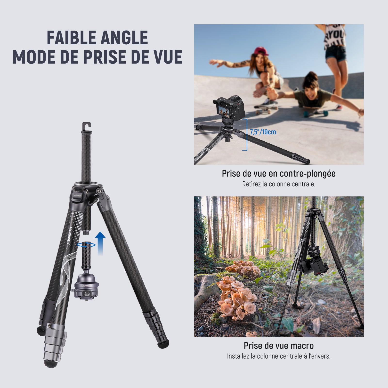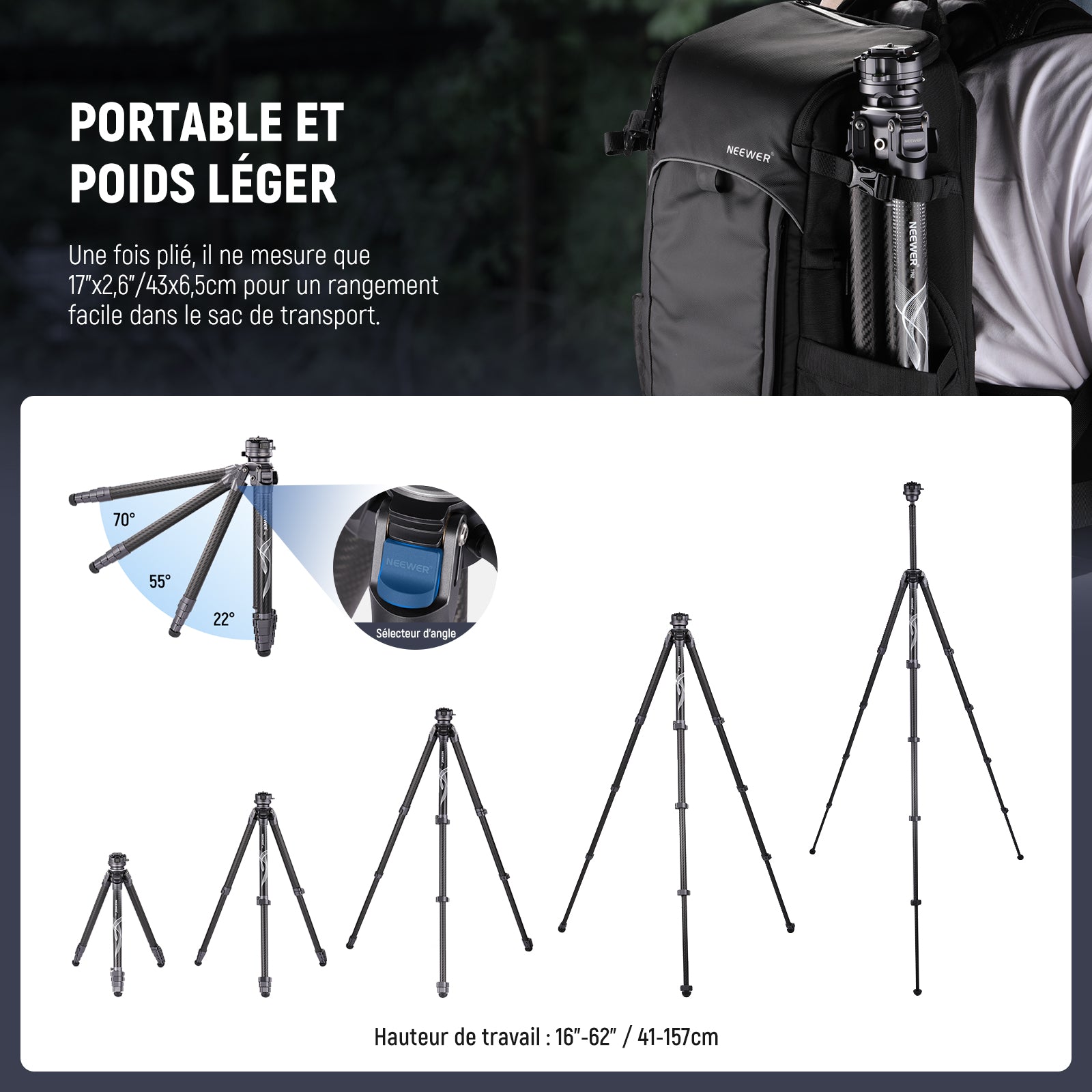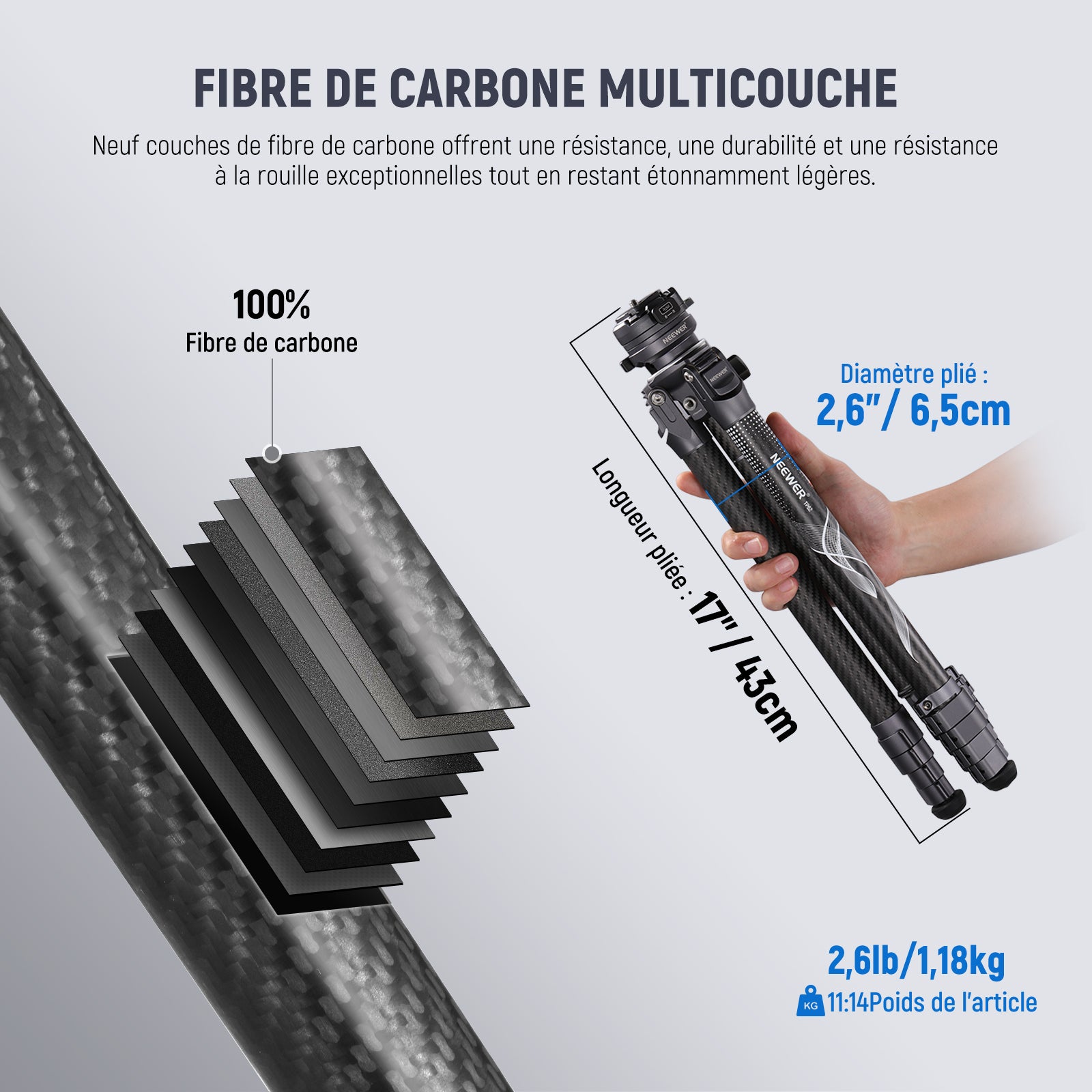 NEEWER TP62 Trépied de voyage en fibre de carbone 62"