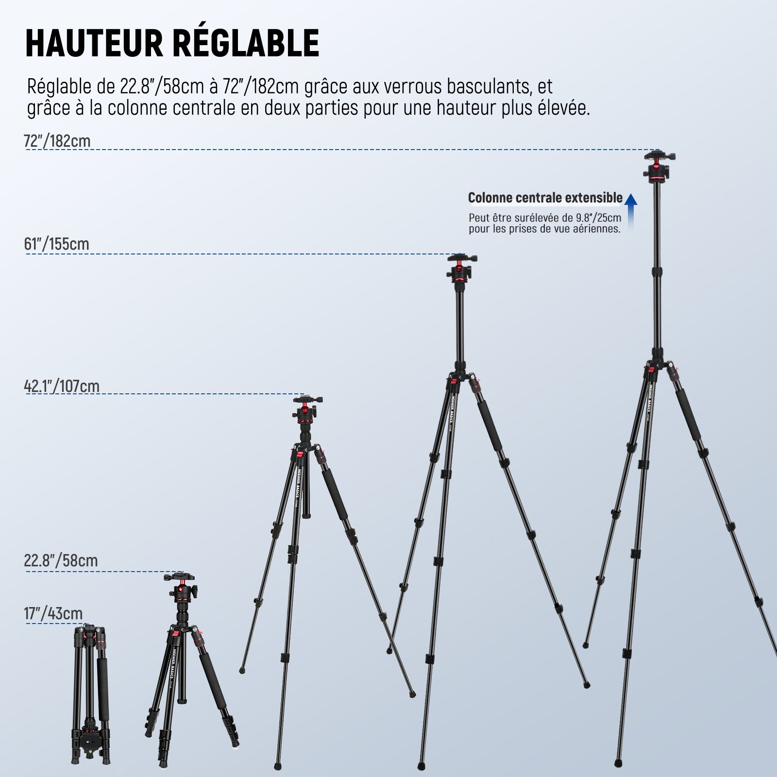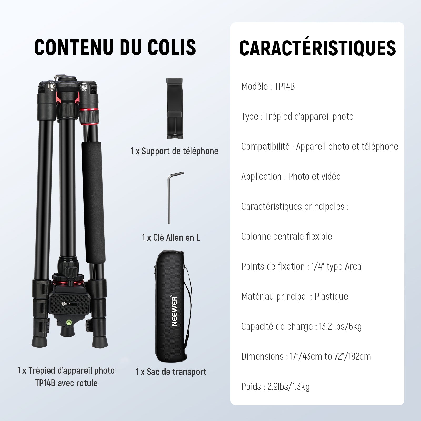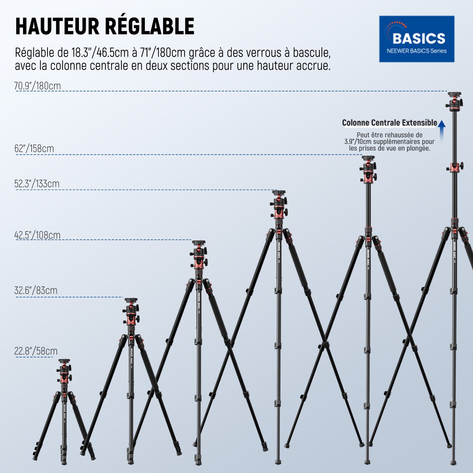 NEEWER BASICS TP14 Trépied de Voyage 72"/182 cm