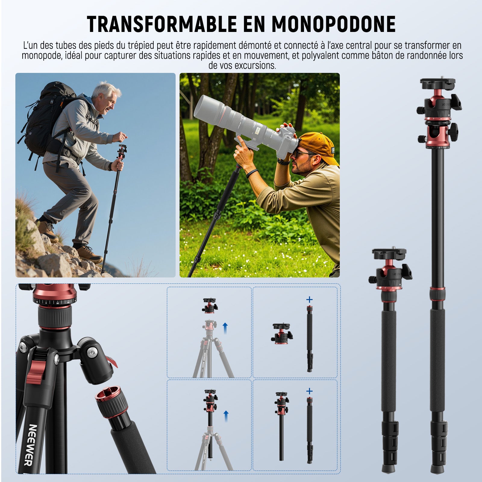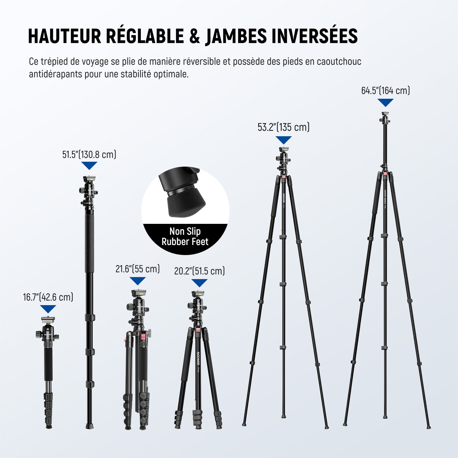 NEEWER TP62 Trépied de voyage en fibre de carbone 62"