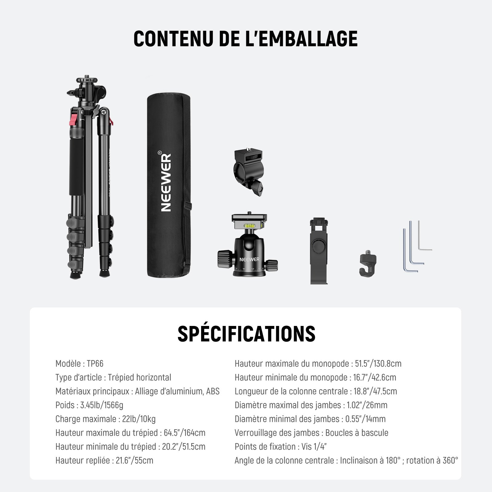NEEWER TP63/TP64 Trépied Monopode Horizontal