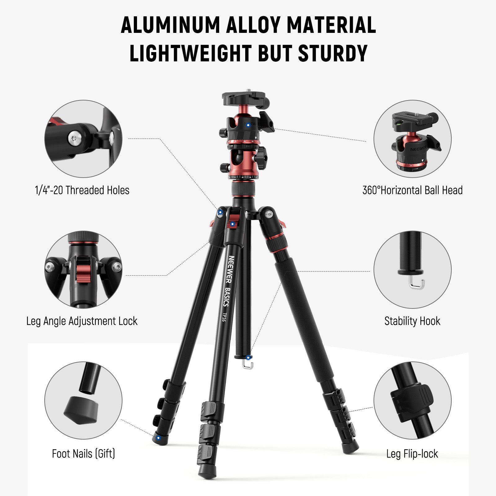 NEEWER BASICS TP12 Trépied de Voyage Caméra 66.5"/169 cm