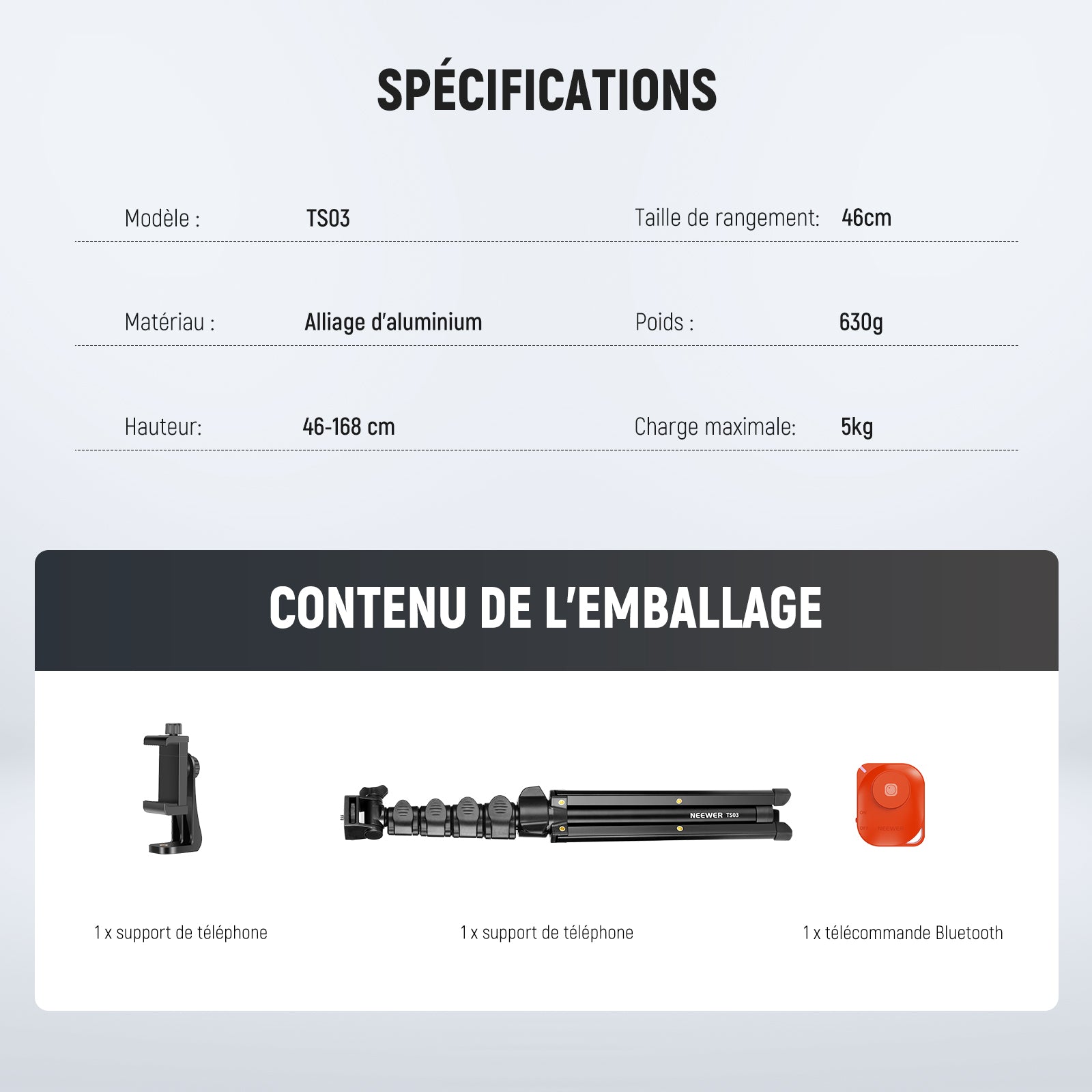 NEEWER BASICS TS03 Trépied de voyage entièrement en métal