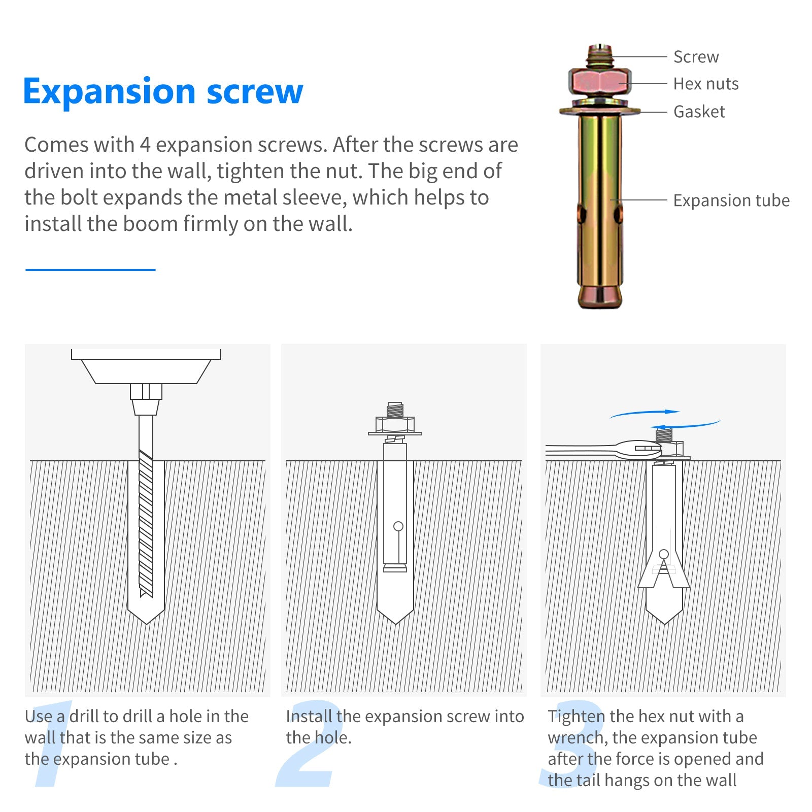 - Base solide: avec une conception de base triangulaire, lui donnant plus de stabilité. Livré avec 4 pièce vis d'extension de goujon, aidant à fixer solidement le montage mural sur le mur