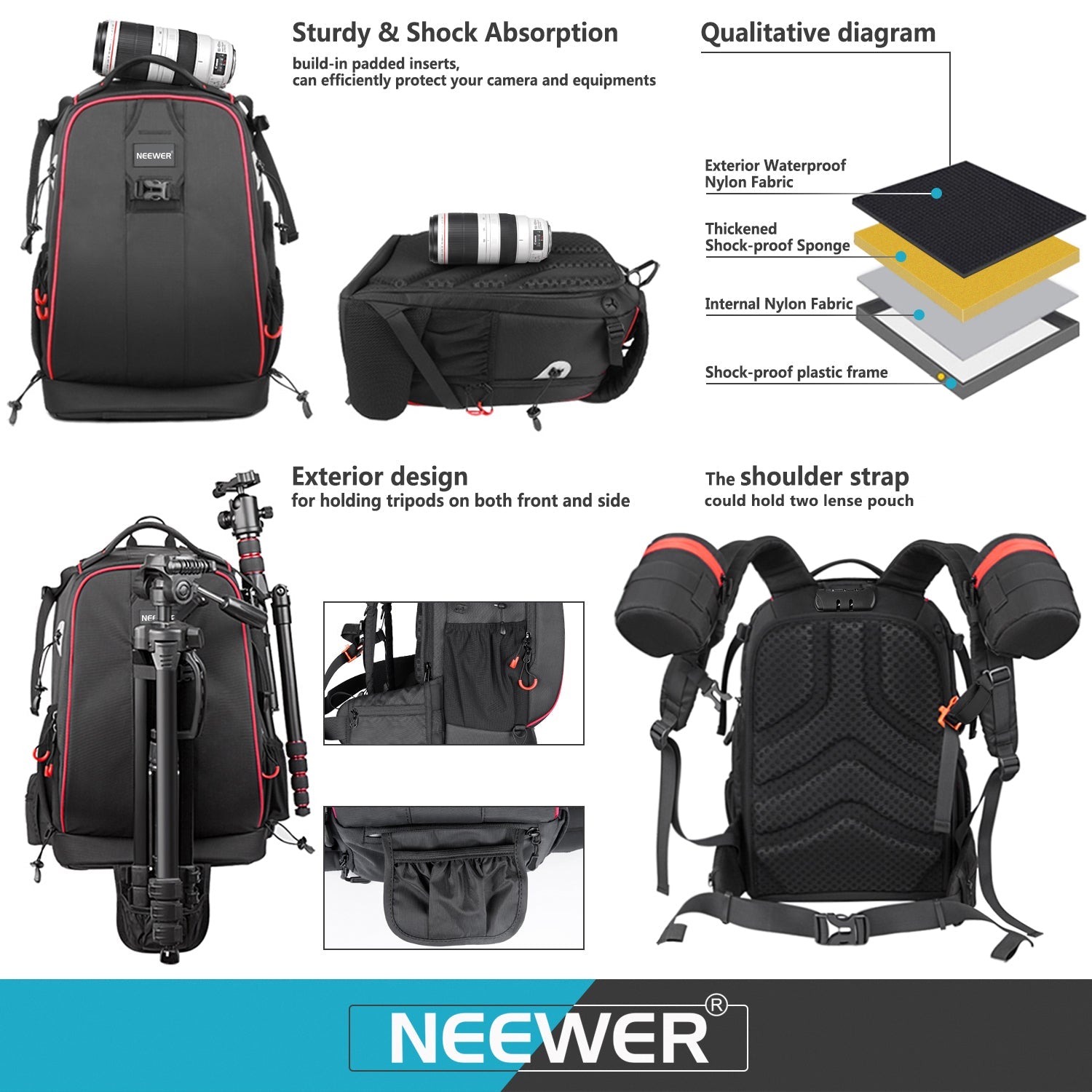 - Matériau durable- Fabriqué en polyester imperméable et en nylon durable avec des coutures renforcées pour faciliter le transport et protéger votre appareil photo et d'autres accessoires. Design ergonomique du dos, respirant, protégeant de la transpiration.