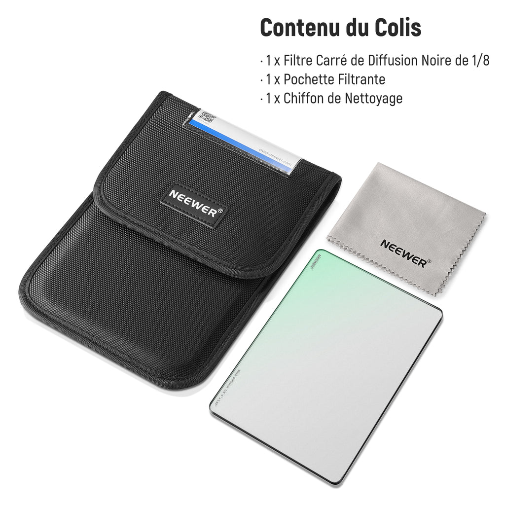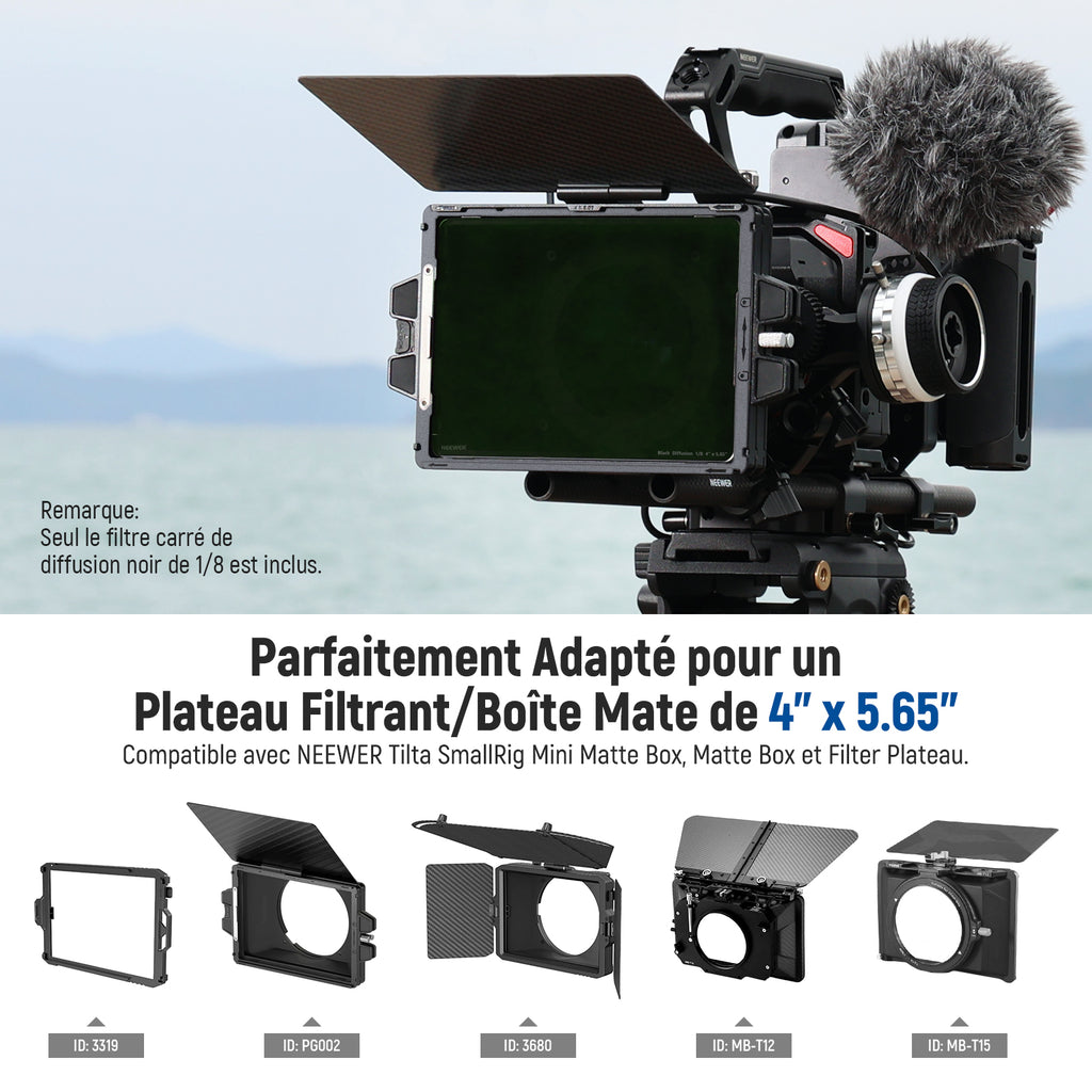 NEEWER 1/8 Effet de Diffusion Noire Brouillard Rêveur 4" x5,65 Filtre Cinéma Carré (Rectangulaire)