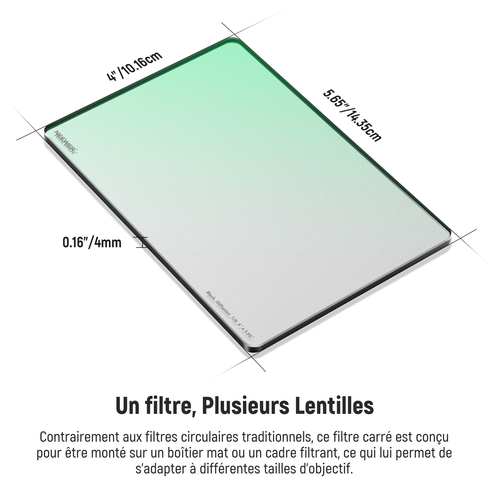 - Filtre Carré de 4"x5,65" pour Matte Box- Le filtre carré (rectangulaire) 4"x5,65" est compatible avec Tilta compatible avec SmallRig Matte Box et Mini Matte Box. Placez simplement le filtre sur une boîte mate et placez l'ensemble devant l'objectif de votre appareil photo, puis obtenez le look cinématographique