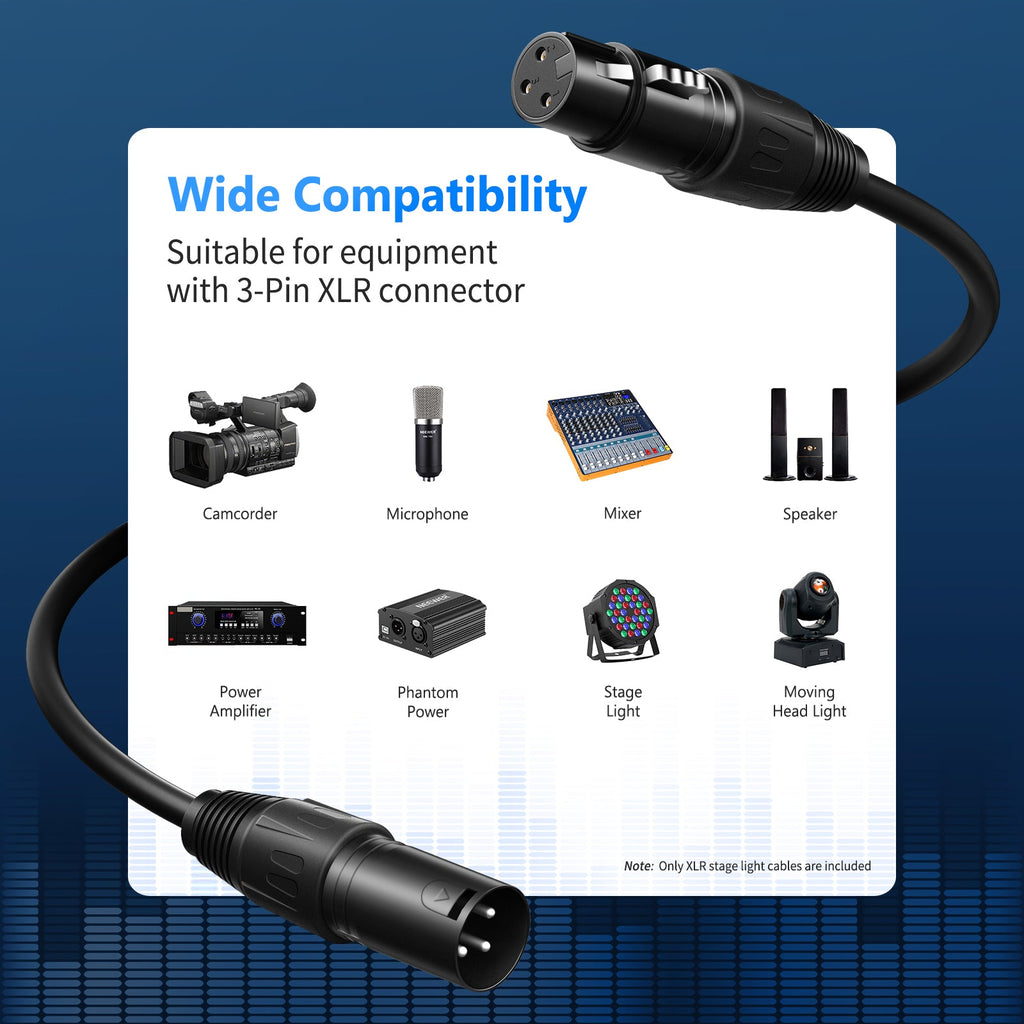 • Lot de 10 câbles DMX de 2 mètres avec signal 3 broches, connexion mâle-femelle XLR.