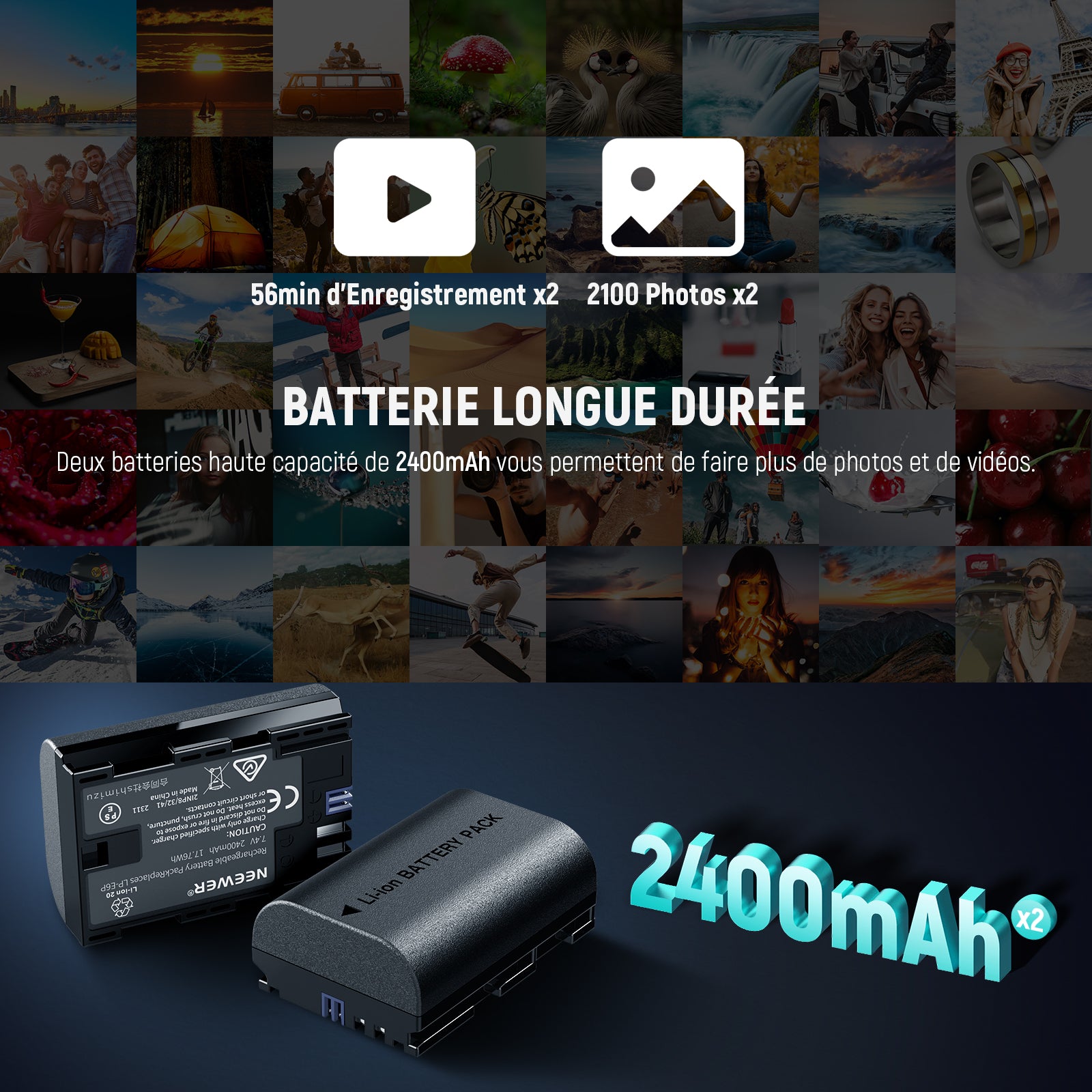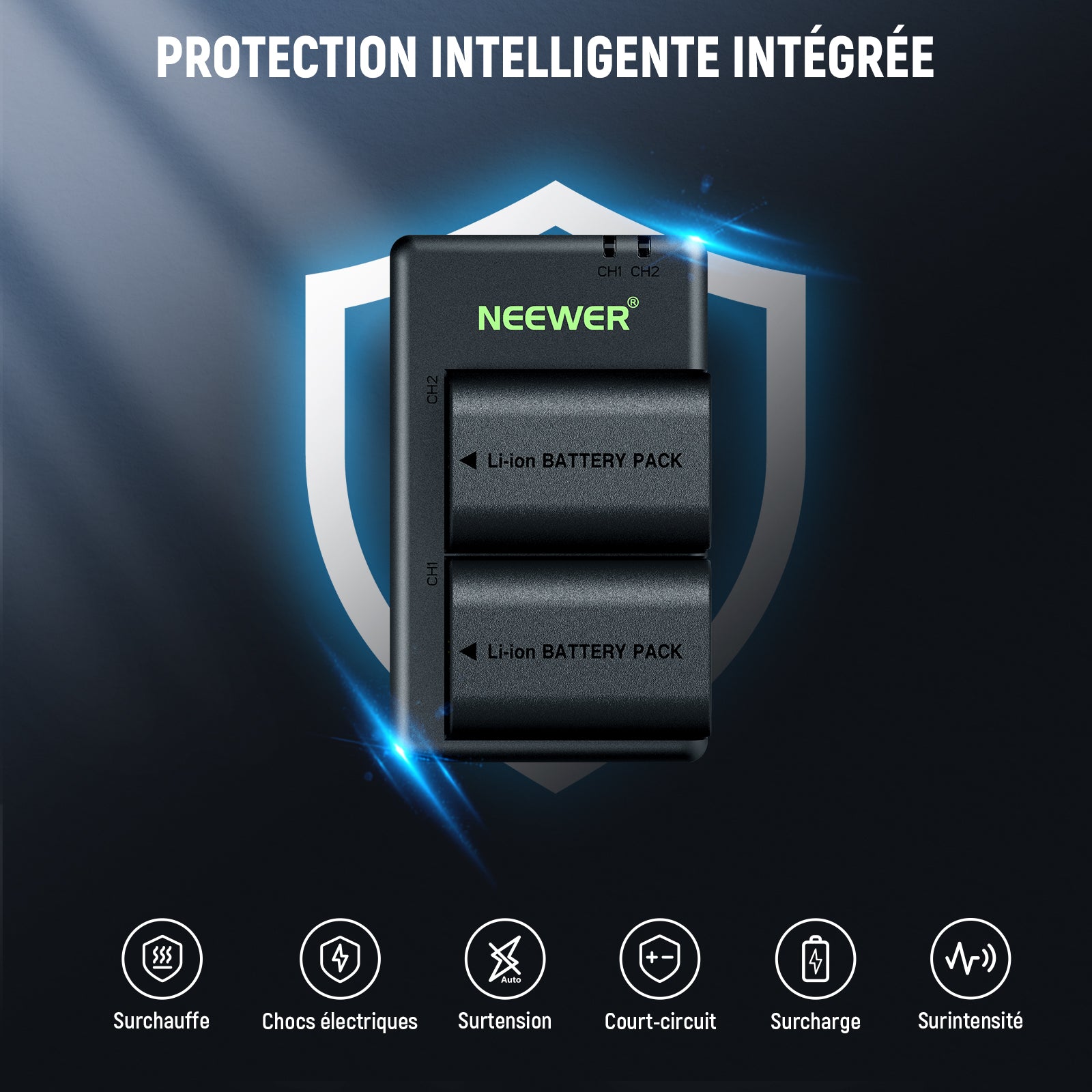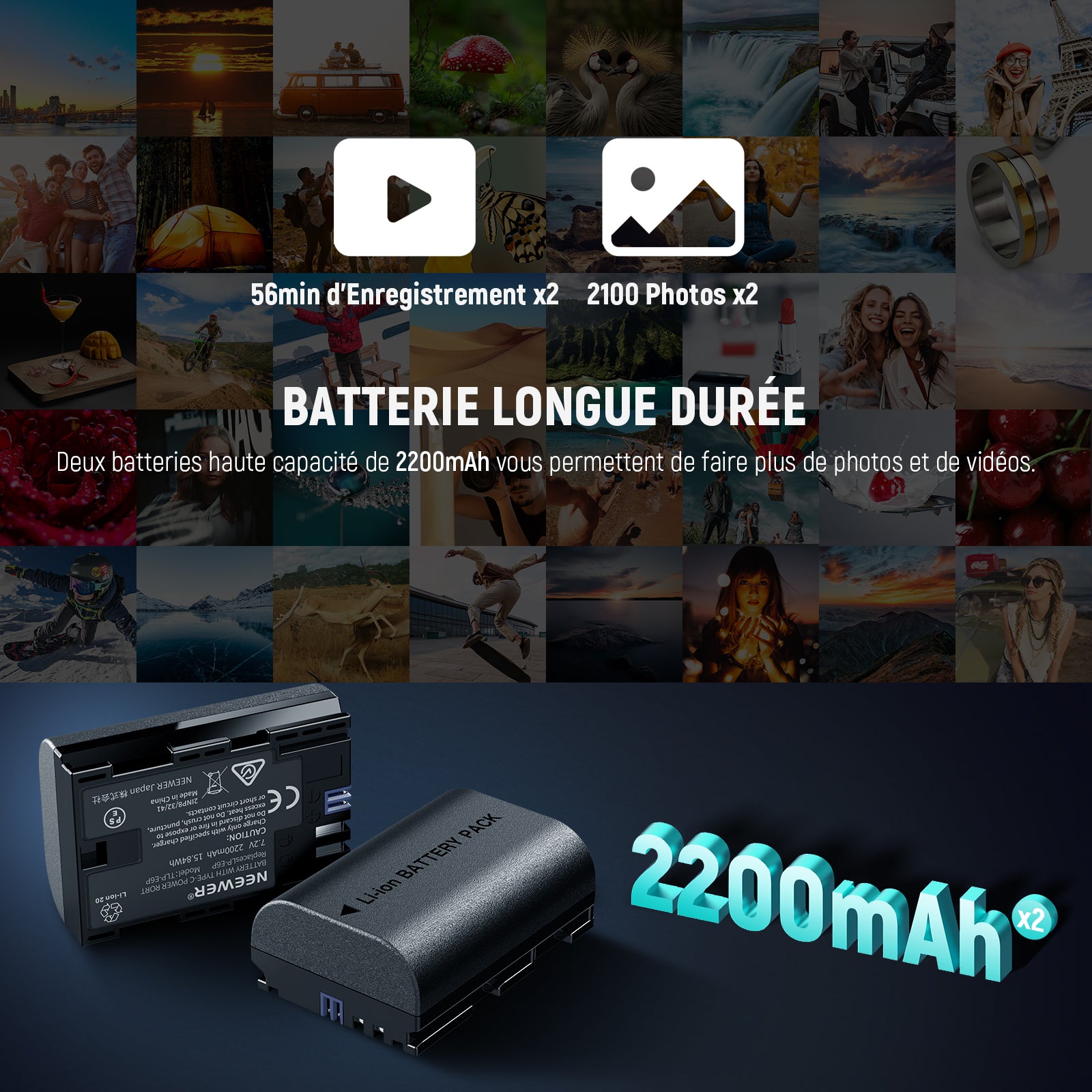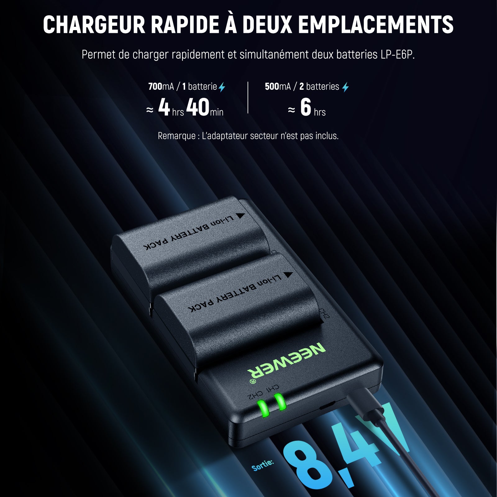 NEEWER LP-E6P Lot de 2 Batteries 2200mAh LP-E6P/E6NH/E6N/E6 + Chargeur USB Double