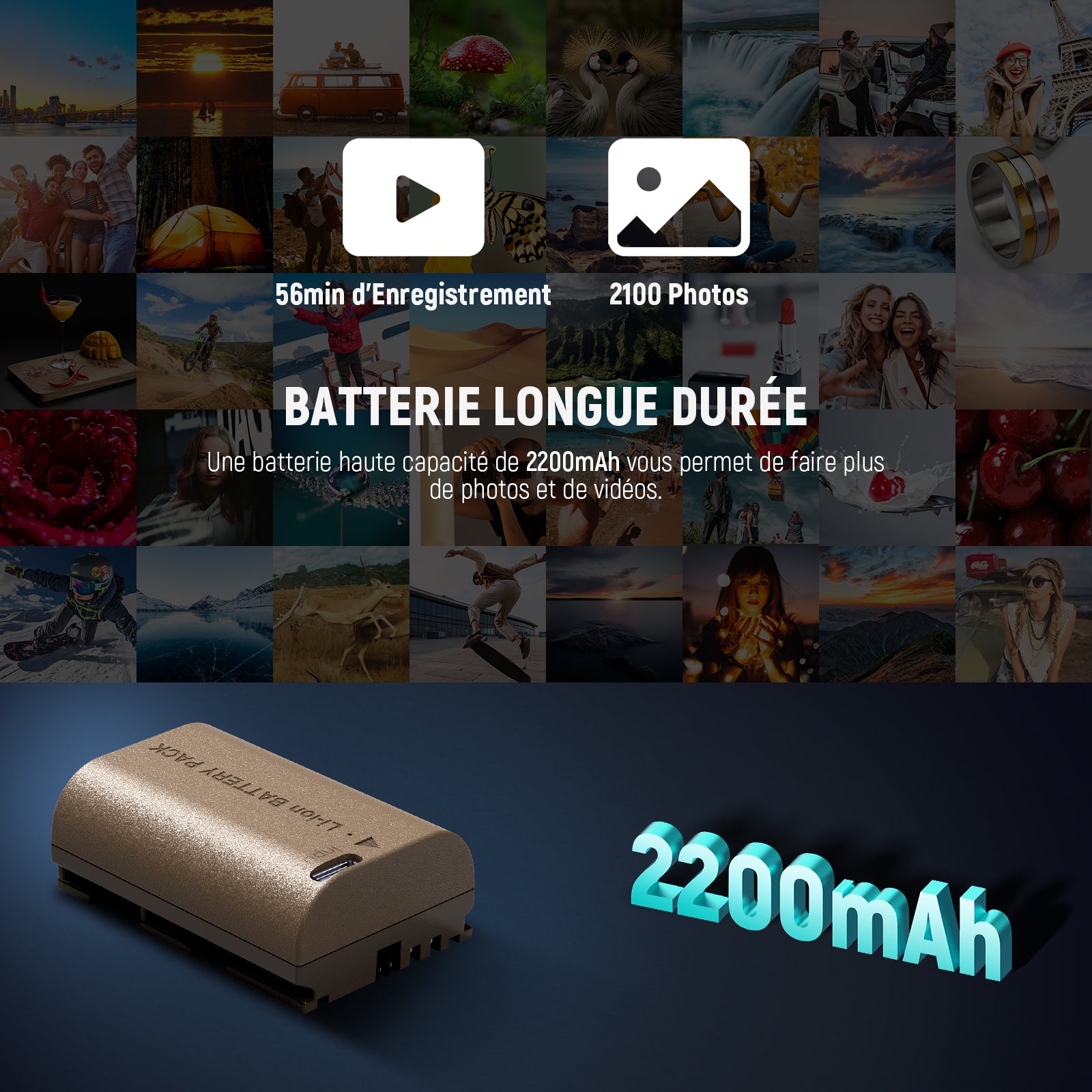 - 【2200mAh – Haute capacité pour une autonomie prolongée】Notre batterie de remplacement LP-E6 de 2200 mAh fournit une puissance stable et suffisante pour des sessions de prise de vue prolongées, permettant des captures ininterrompues en photographie de rue ou de voyage. Elle offre des possibilités illimitées pour la photographie en intérieur et en extérieur, incluant les portraits, les natures mortes et les paysages.