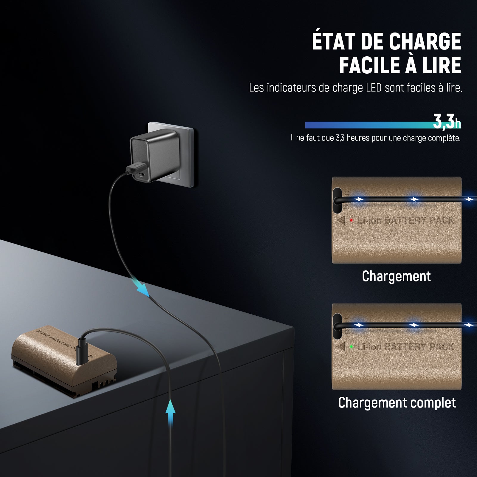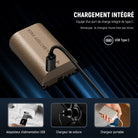 - 【3,3 H entièrement rechargée via Type C】 Un port de type C intégré permet une alimentation sans effort via un chargeur portable,un ordinateur portable, un adaptateur ou un chargeur de voiture à l'aide du câble de charge inclus.Une charge complète ne prend que 3,3h et un indicateur présente l'état de charge. Efficace pour recharger, assurant une sauvegarde fiable pour votre travail.De plus,il prend également en charge le chargement de l'appareil photo ou avec un chargeur LP-E6P (vendu séparément)
