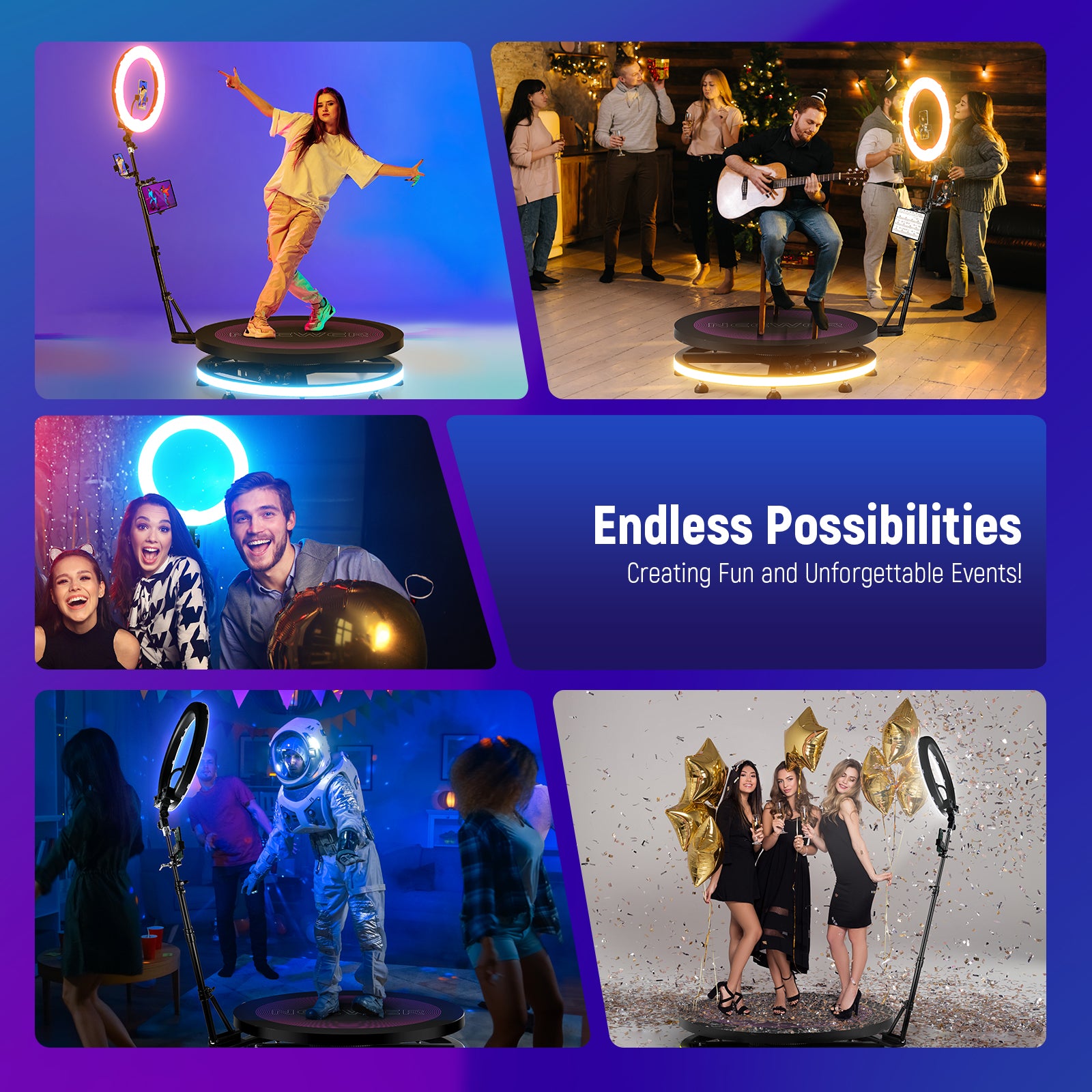 - Scènes applicables : Diffusion en direct, fêtes, célébrations de magasins, expositions, mariages, réunions de famille, studios de photographie, prises de vue scéniques, etc.