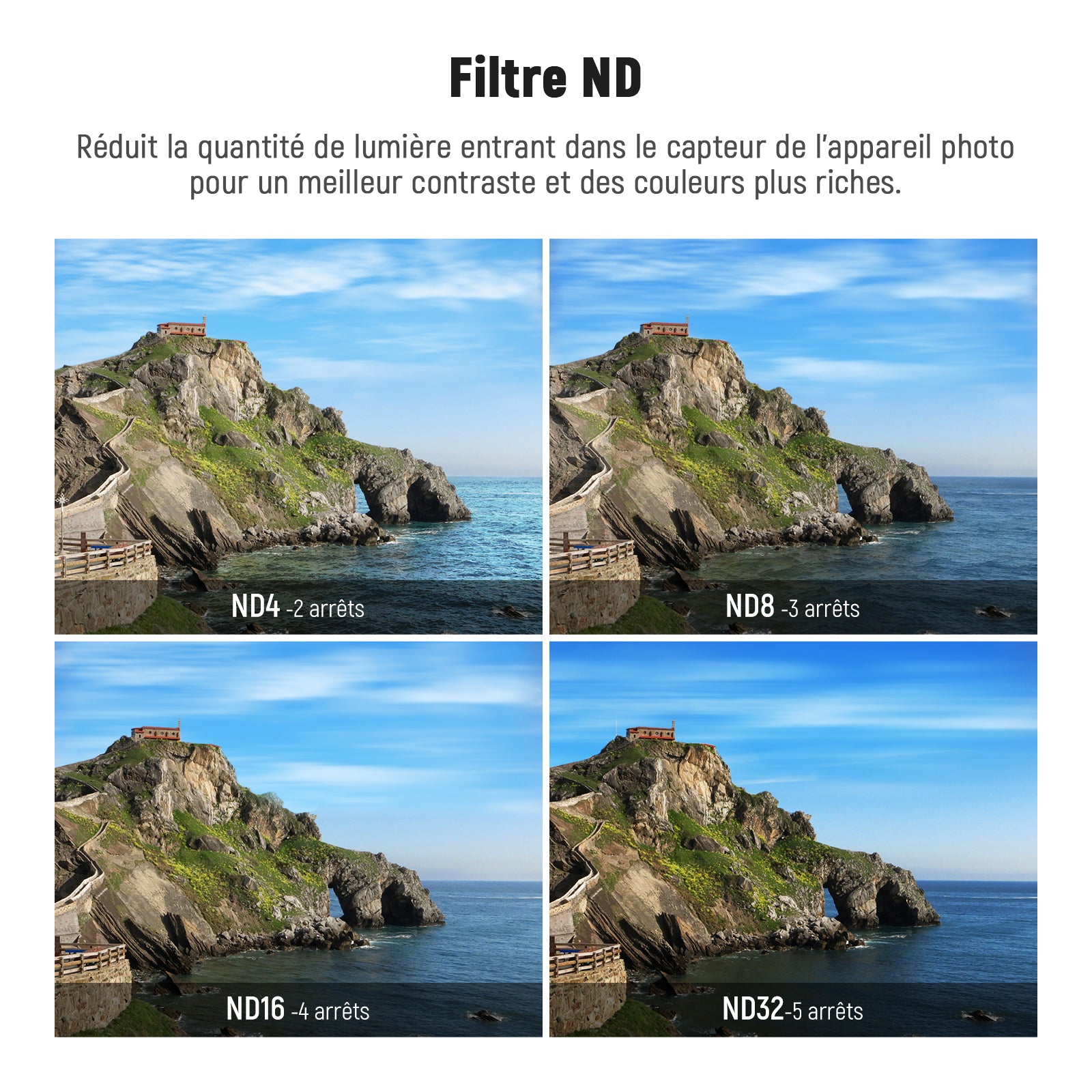 - GRANDE FONCTION: Les filtres ND réduisent la quantité de lumière atteignant le film sans affecter la couleur et vous permettent d'avoir plus de contrôle sur l'ouverture de l'appareil photo, le temps d'exposition et les paramètres de sensibilité du capteur; Il peut produire une profondeur de champ plus faible ou obtenir une photo plus nette