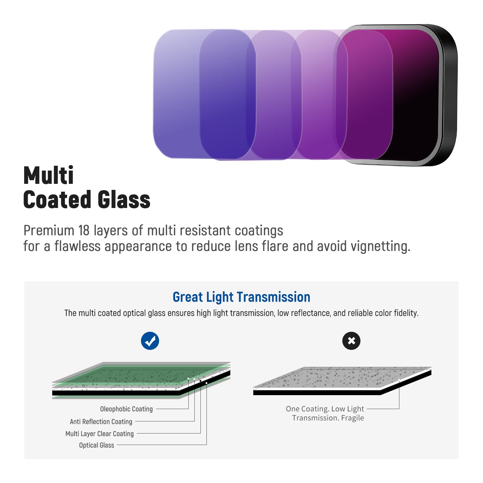 - VERRE OPTIQUE MULTI-COUCHE: Fabriqué en verre optique, un bon niveau de transmission, verre cristallin pour la vidéo haute définition; Caractéristiques étanche à l'eau, à l'huile et aux rayures, réduit le brouillard d'empreintes digitales. Il garantit également un faible indice de réfraction / une neutralité des couleurs exceptionnelle / une transmission parfaite de la cible