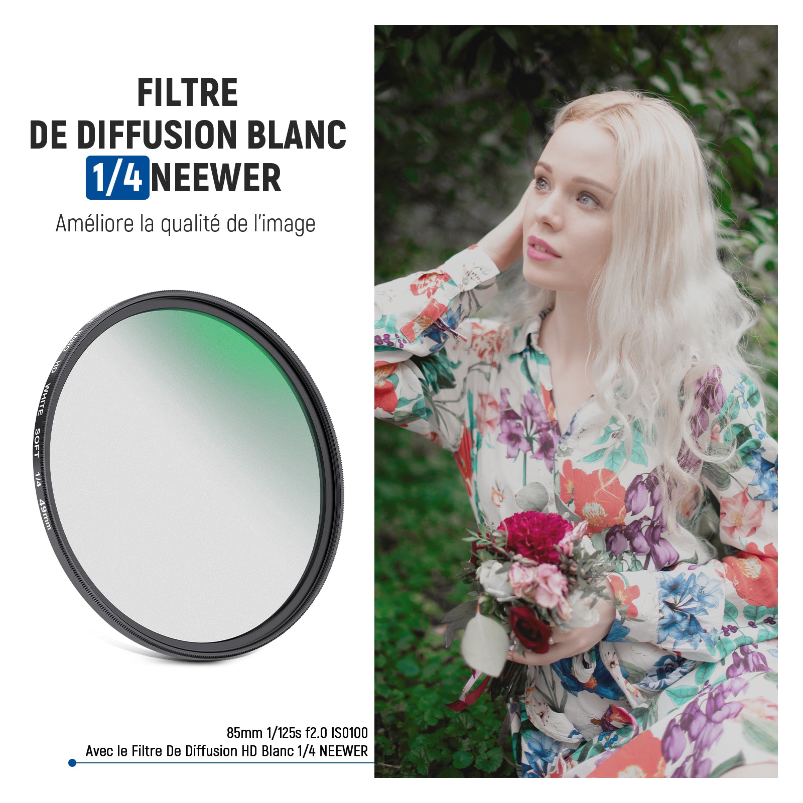 - Diffuse une lumière dure : le filtre de diffusion blanc doux Neewer 1/4 adoucit les reflets agressifs qui pénètrent dans l'objectif de l'appareil photo, équilibre le contraste, met en évidence les détails dans les zones sombres et crée un effet de rêve, brumeux et rétro dans toutes vos images. Plus doux et plus éthéré, mais presque aucune perte de clarté ou de détails