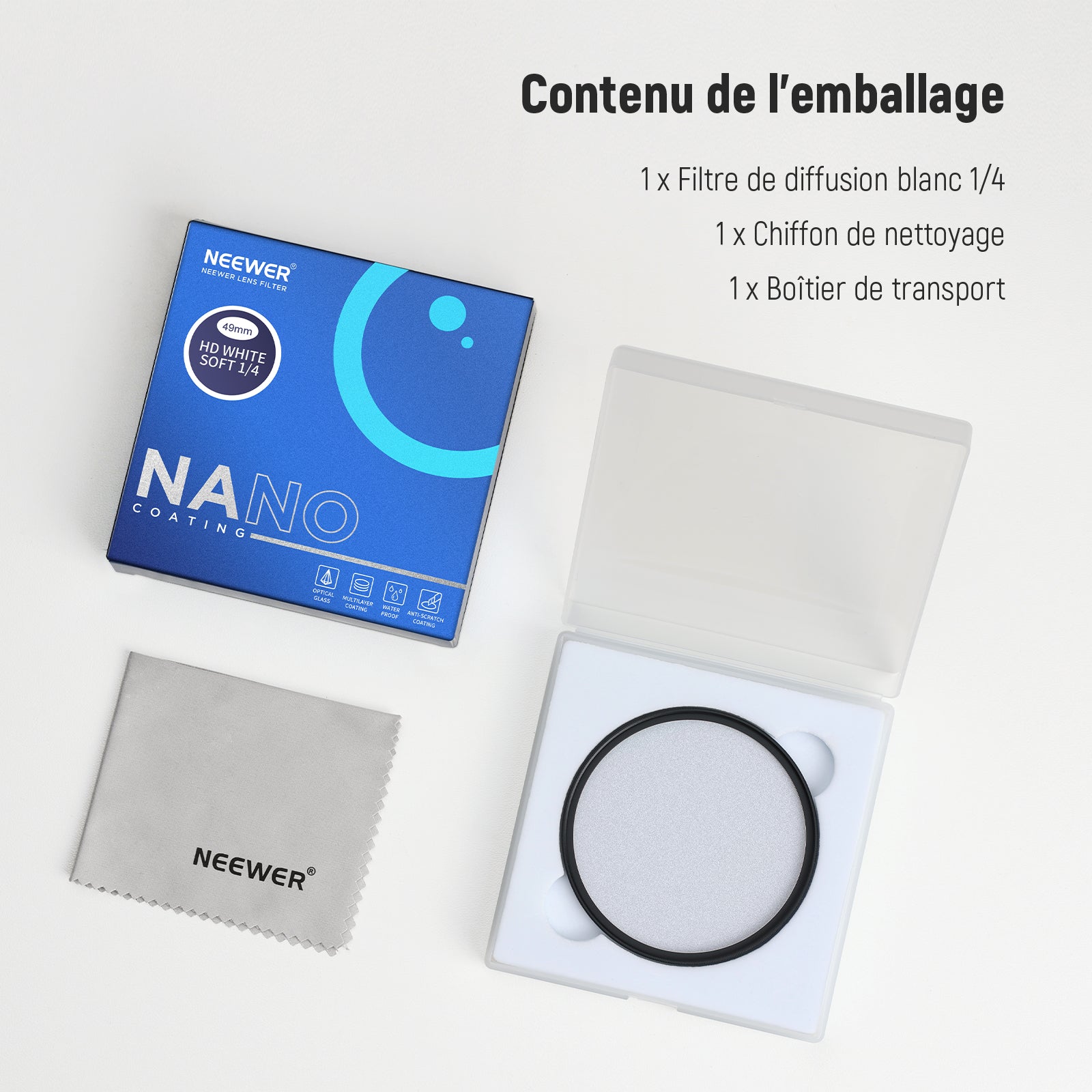 - 1 filtre de diffusion blanc doux 1/4 de 49 mm.