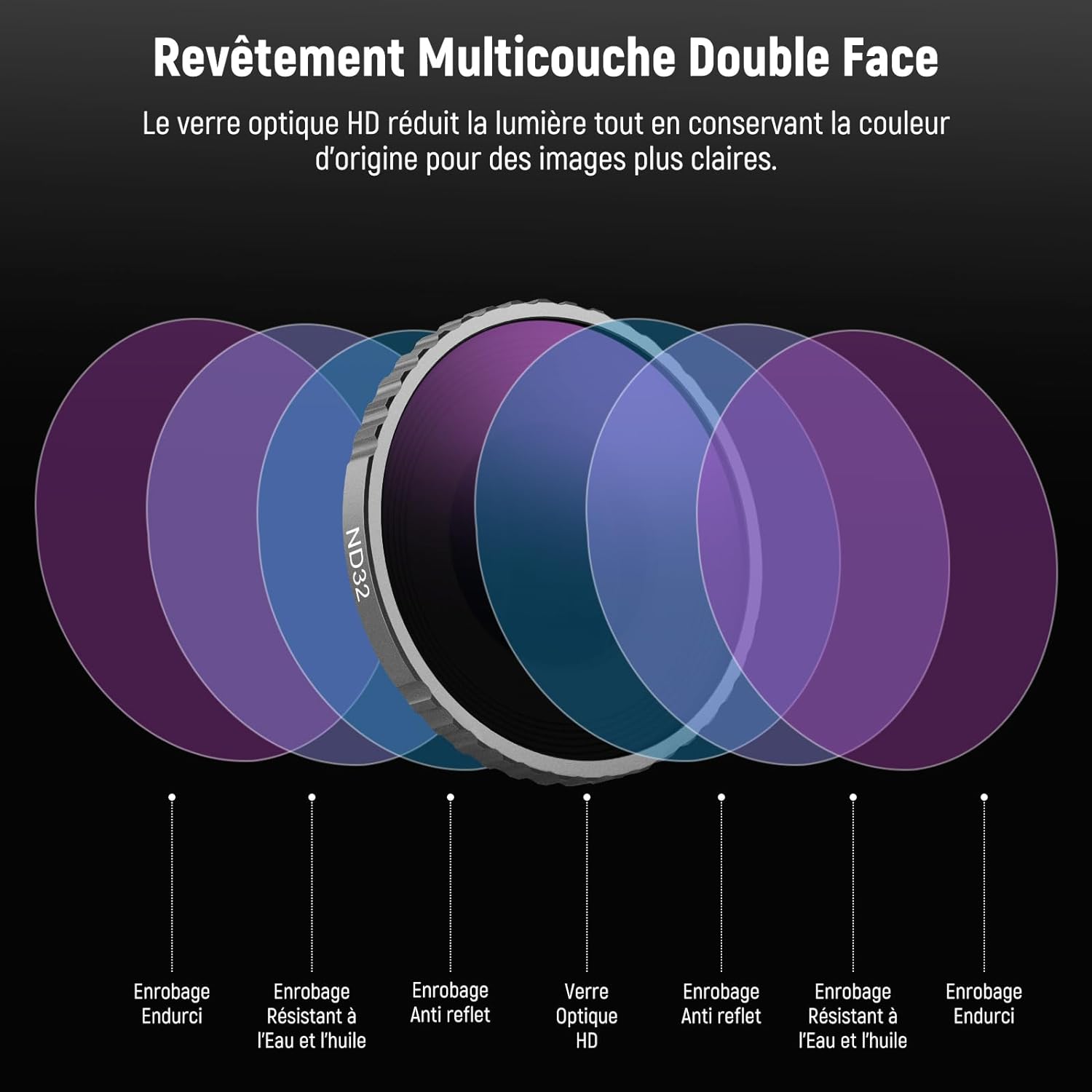 - 【Revêtement NANO multicouche des deux côtés】 Avec 30 couches de revêtements NANO multifonctionnels des deux côtés du verre optique HD, ces filtres sont hydrofuges, résistants aux rayures et à l'huile.
