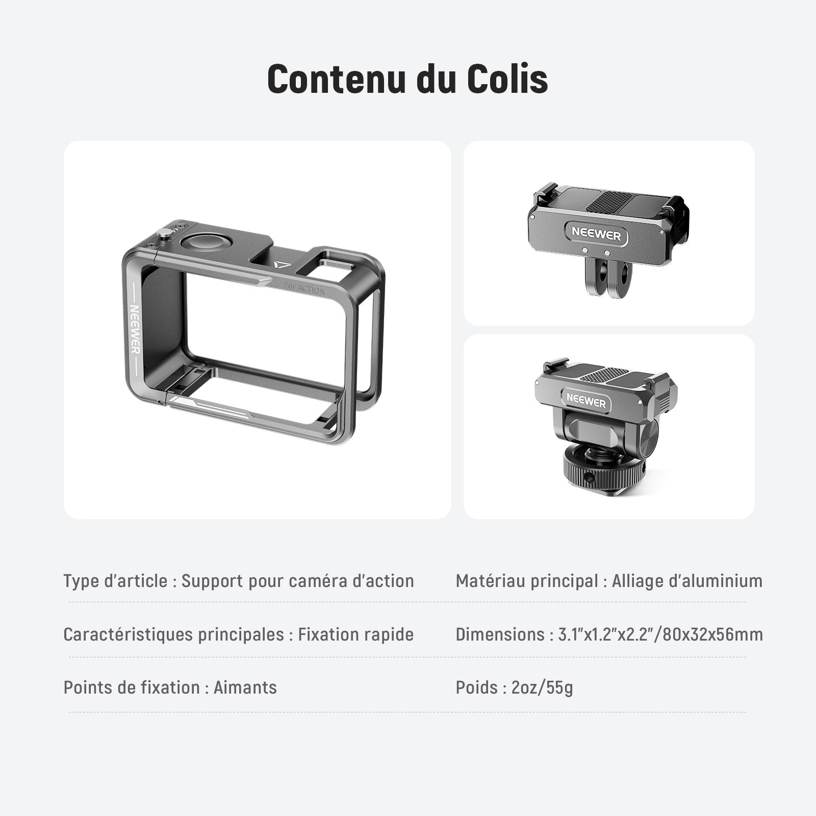 NEEWER AC011+AC012+ AC014 Kit de Cage pour caméra d'action pour DJI Action 5 Pro/4/3
