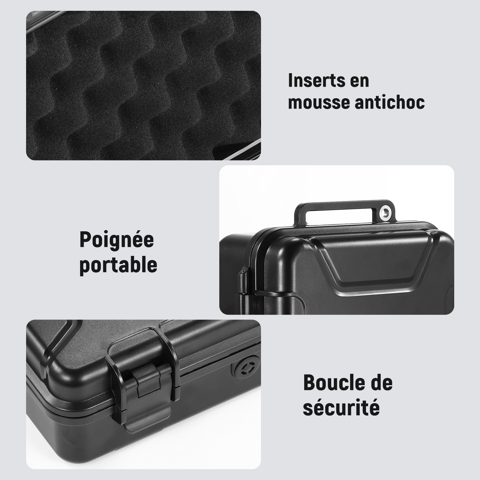 - Inserts en mousse résistant aux chocs : les inserts en mousse haute densité absorbant les chocs protègent votre équipement des chocs, des chocs et des rayures et assurent un transport sûr