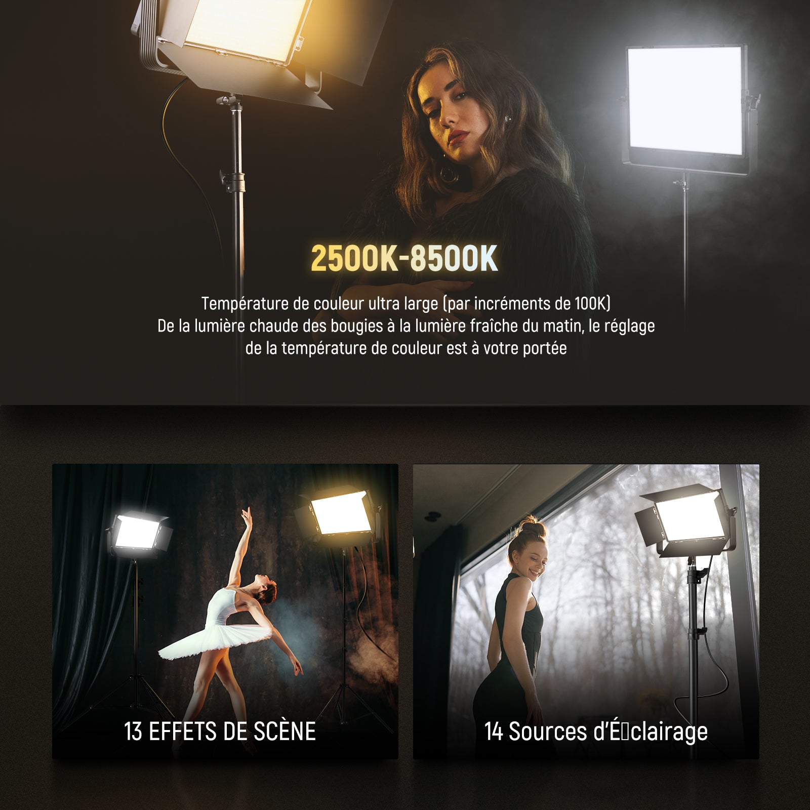 - Température de couleur : 2500K-8500K (par incréments de 100K)