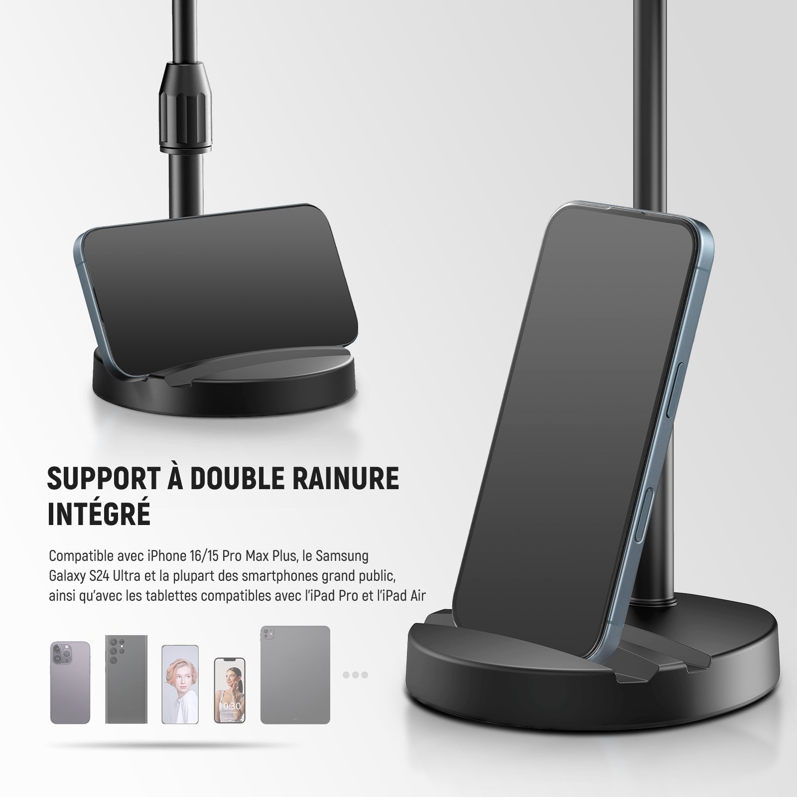 - 【Pour la photographie sur téléphone】 La base du support d'anneau lumineux suspendu est dotée de deux rainures, permettant ainsi de le fixer à tous les smartphones, compatibles avec iPhone 16, 15 Pro Max Plus, Samsung Galaxy S24 Ultra, etc., pour filmer et enregistrer des vidéos. Prenez des photos et des images, diffusez ou enregistrez des vidéos avec l'appareil photo de votre téléphone portable, sans avoir à acheter d'accessoires supplémentaires.