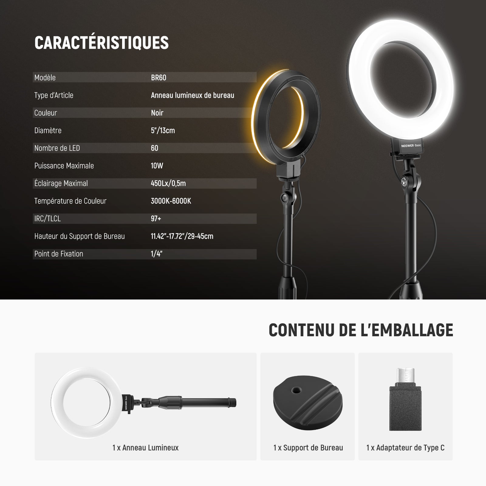 NEEWER BASICS BR60 Anneau Lumineux de Bureau 13cm avec Support