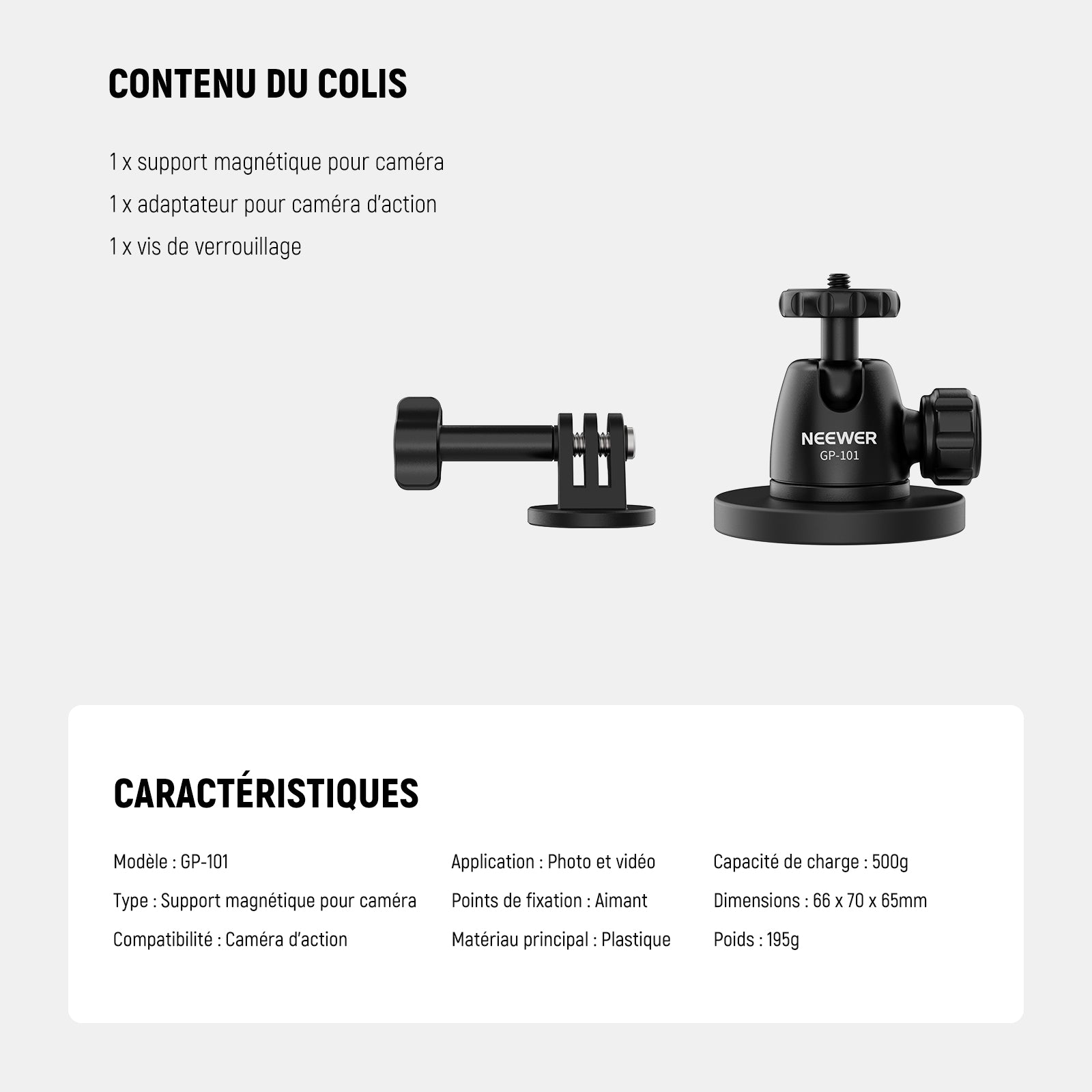 NEEWER BASICS GP-101 Support Magnétique pour Caméra d'action
