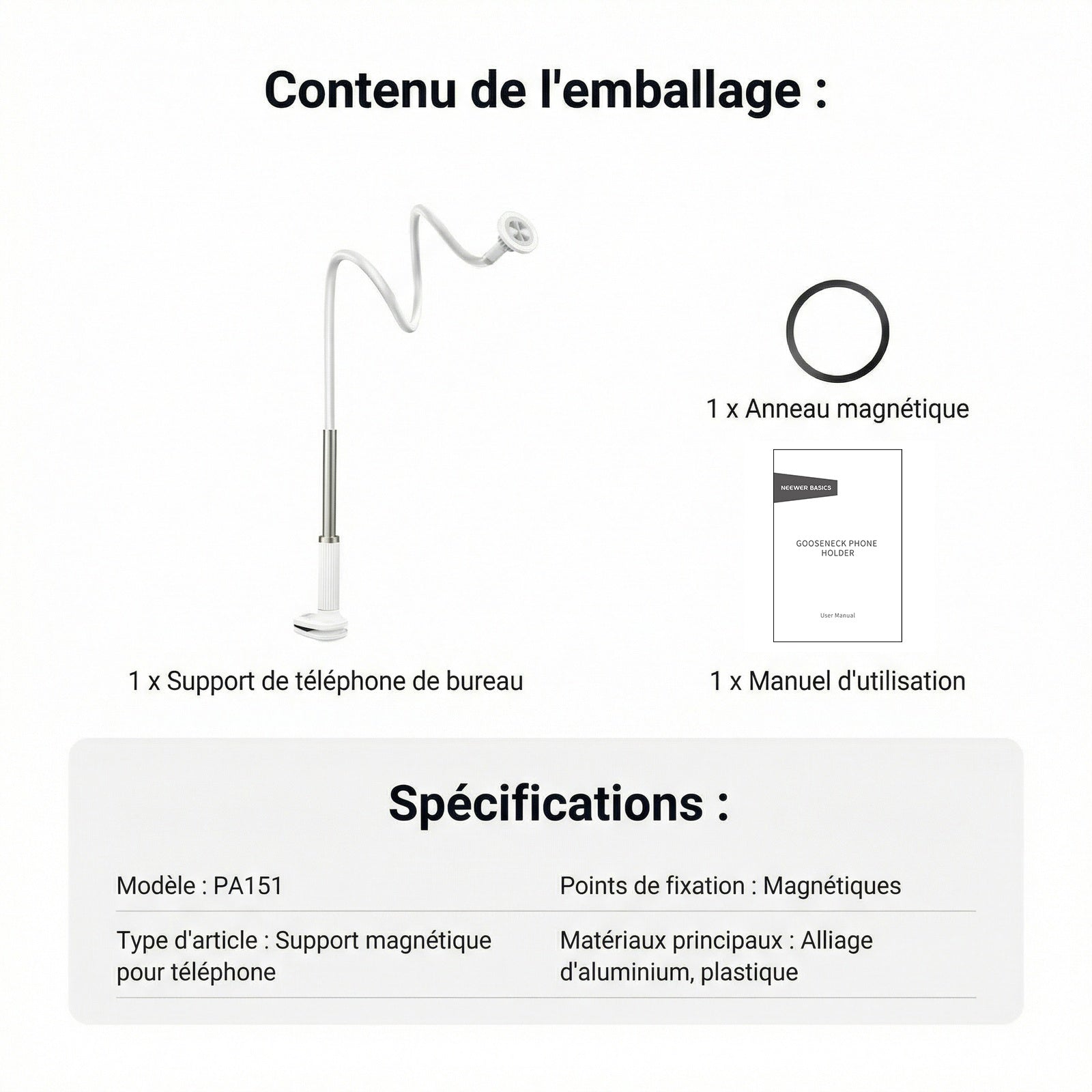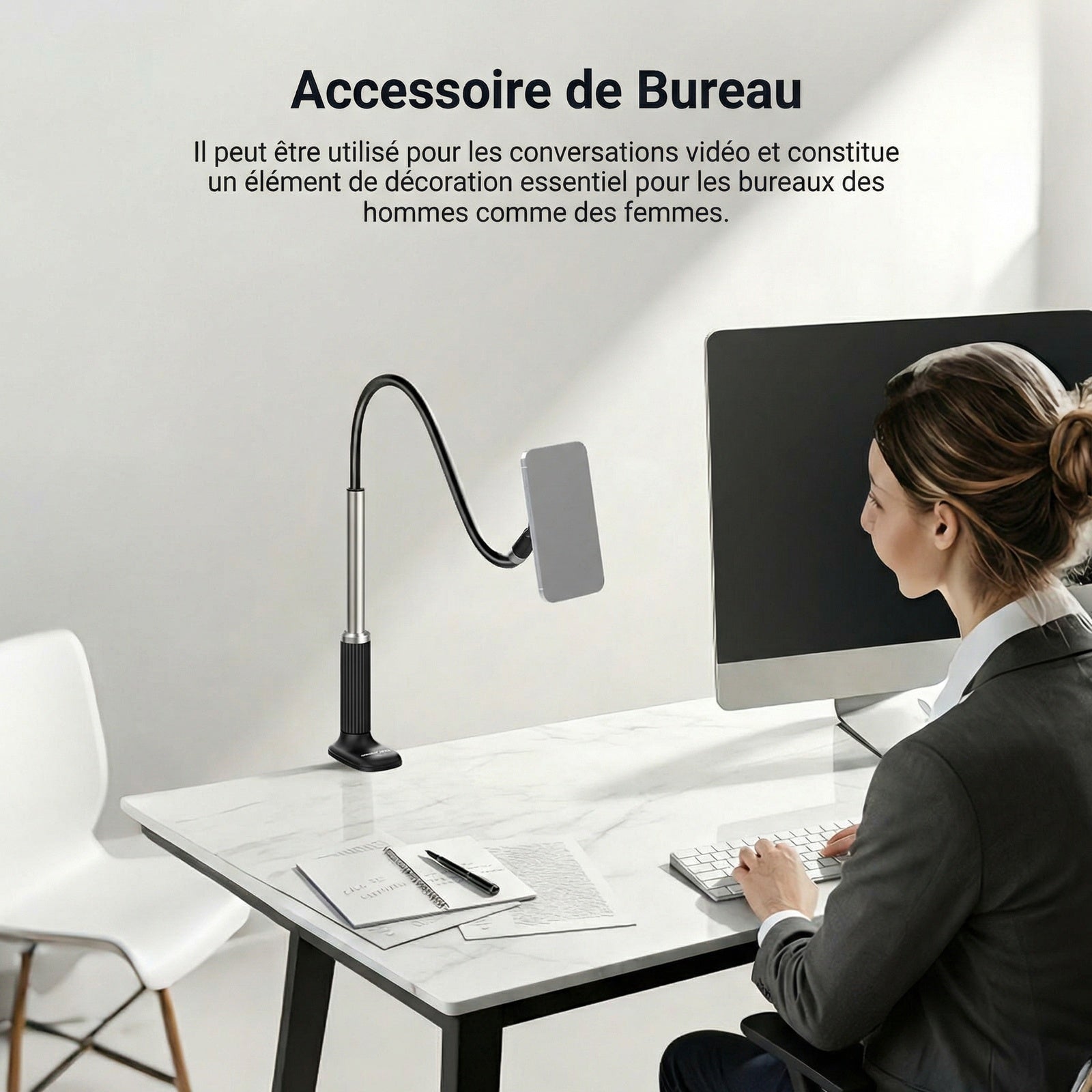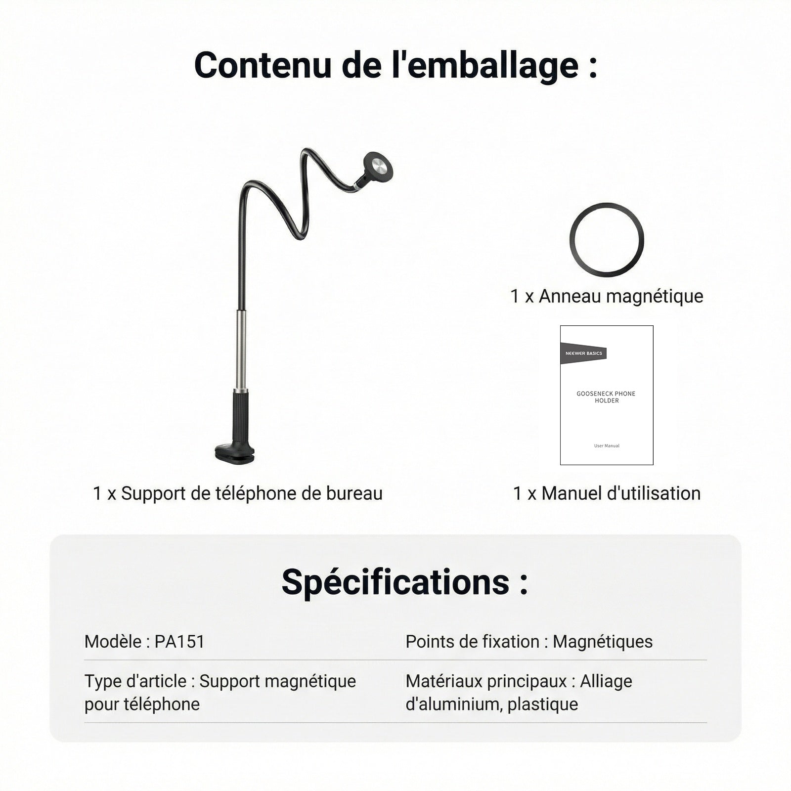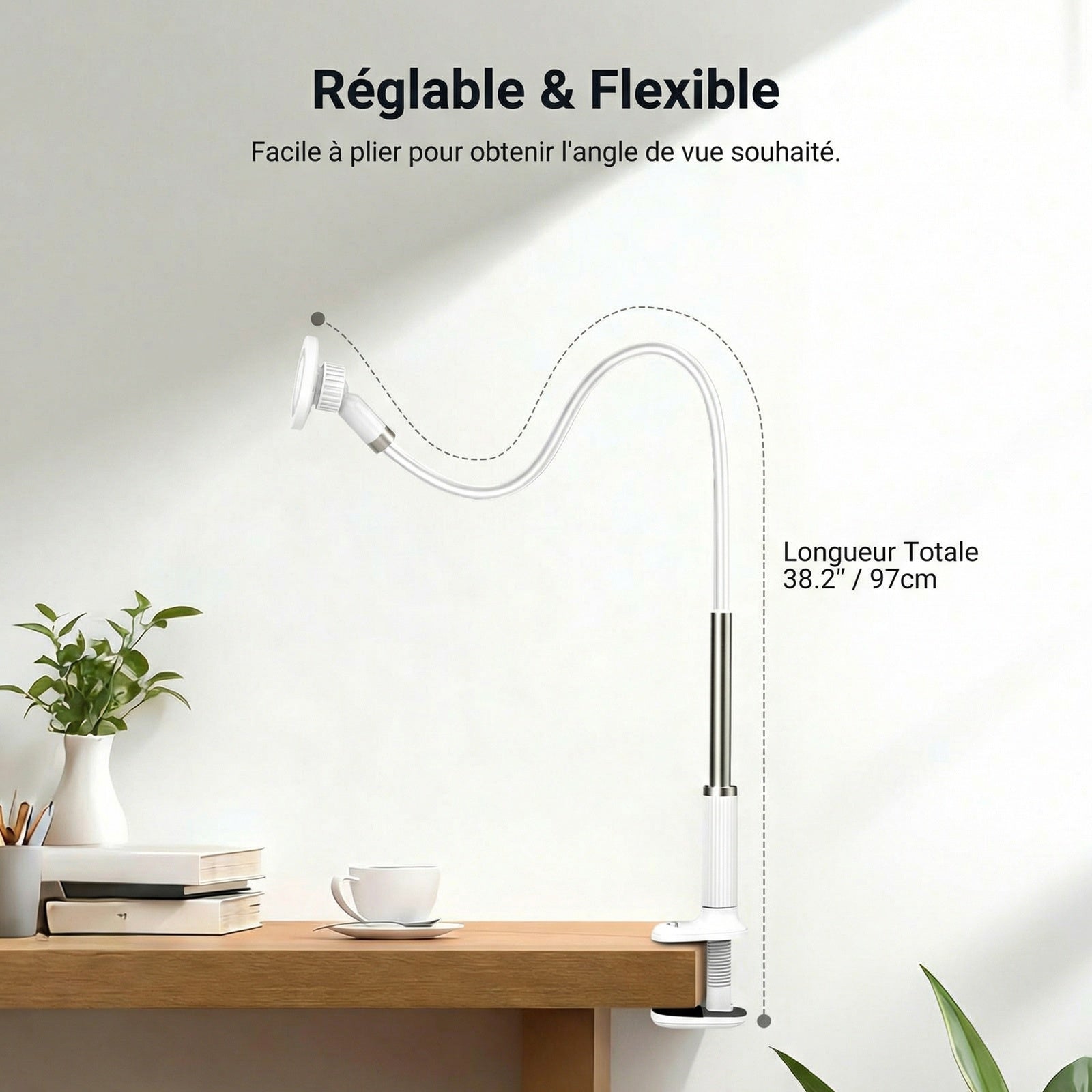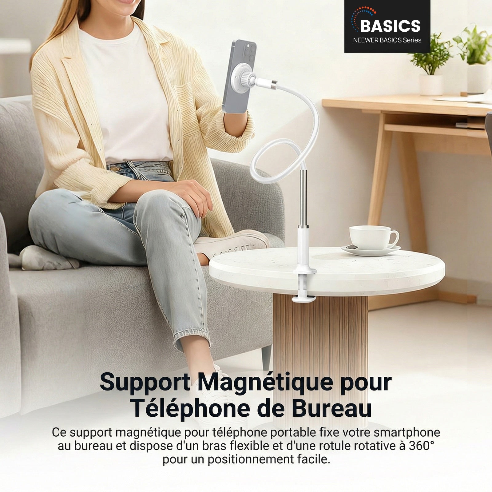 - 【Support magnétique pour téléphone avec bras flexible】 Ce support magnétique pour téléphone fixe votre smartphone au bureau grâce à un bras flexible et une rotule à 360° pour un positionnement facile