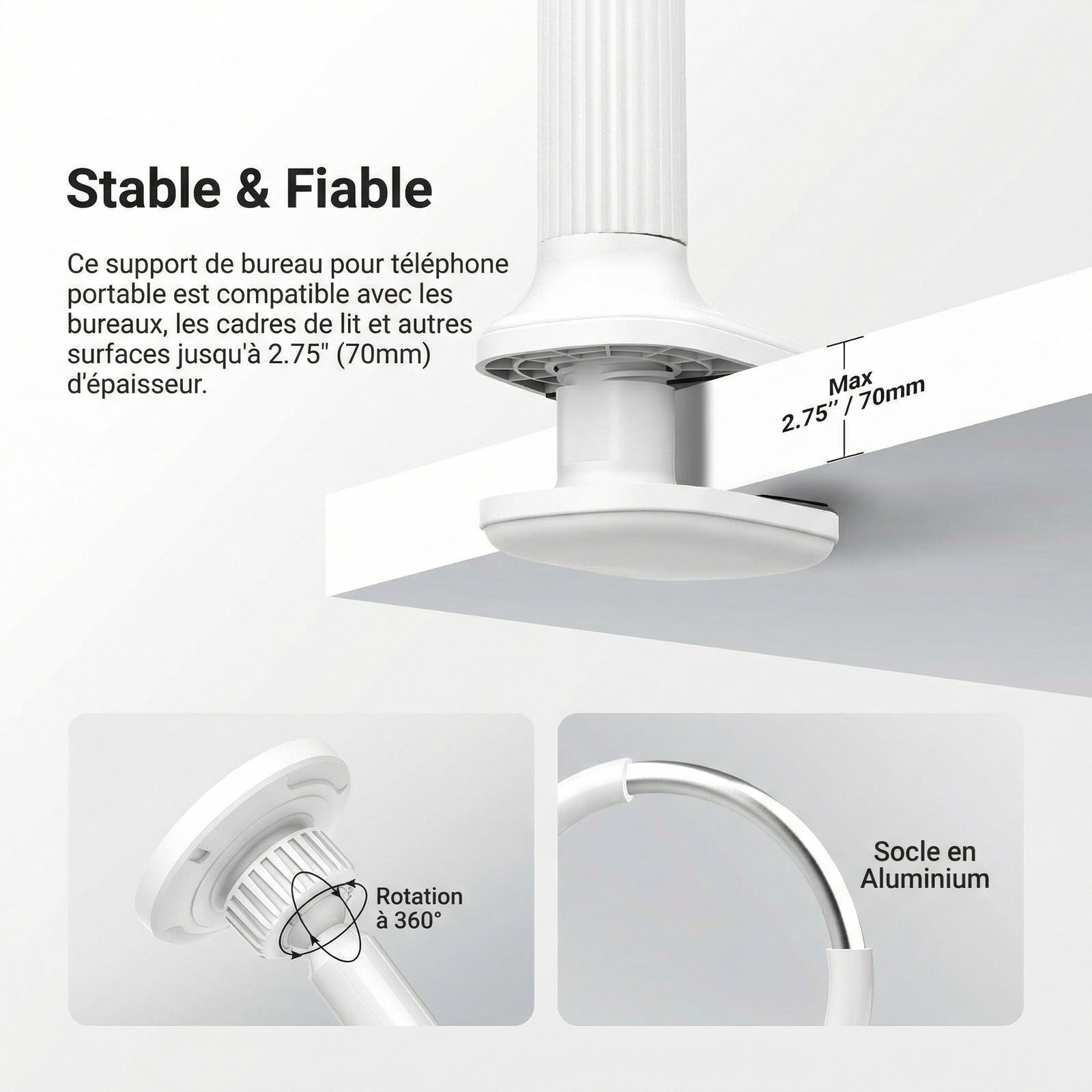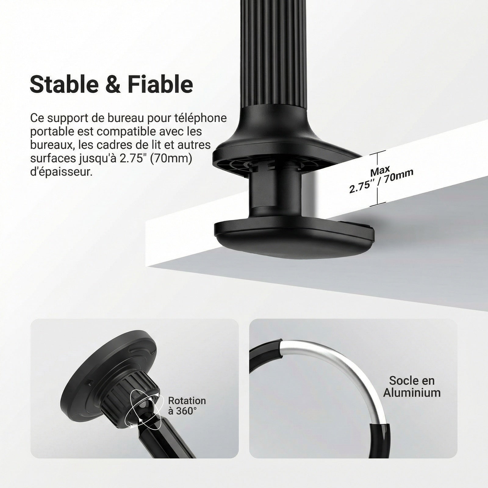 - 【Stable et fiable】 Ce support magnétique pour téléphone portable, idéal pour une utilisation allongée au lit ou pour l'enregistrement vidéo, est fourni avec une pince de table ajustable qui le fixe solidement aux cadres de lit, tables de chevet, bureaux, plans de travail, etc. Ses patins antidérapants protègent vos appareils des rayures