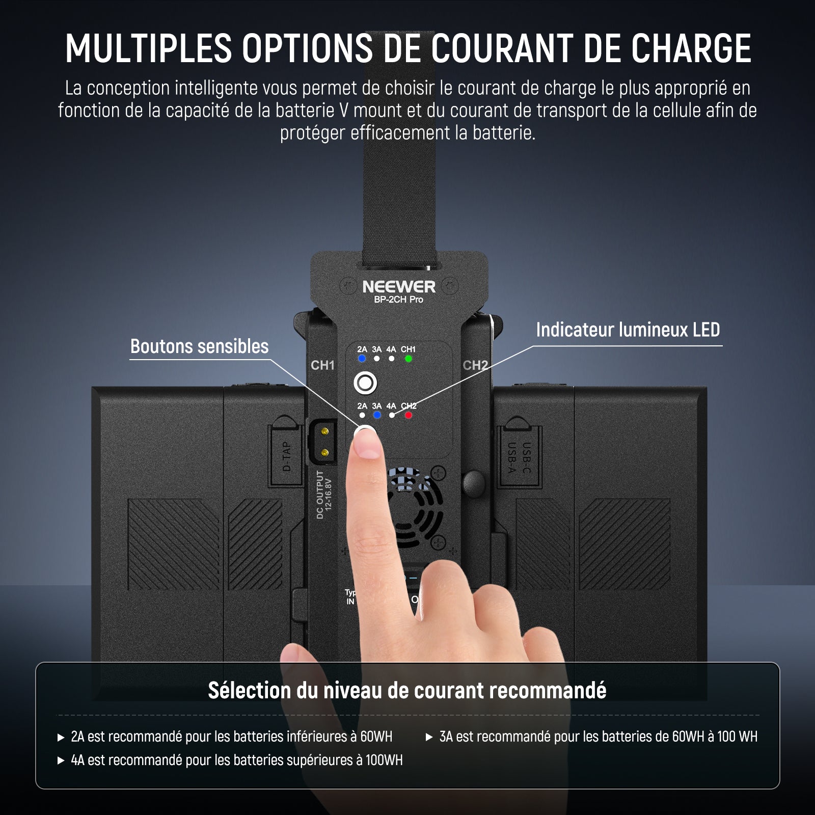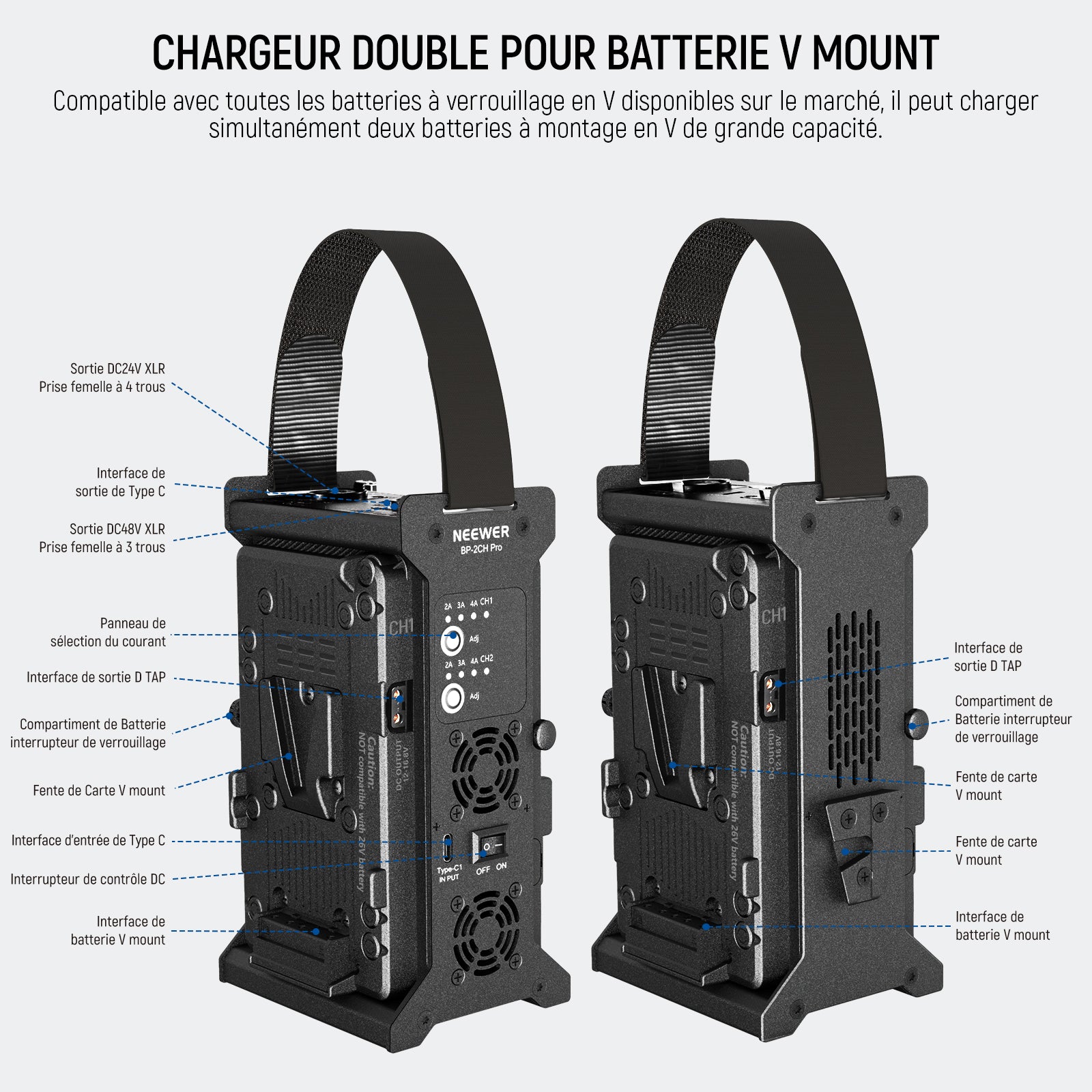 NEEWER BP-2CH Pro Chargeur de Batterie V Mount 2 Canaux avec Charge Rapide USB C 100W PD