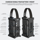 - 【Charge Efficace de Double Batterie】 Le chargeur BP-2CH Pro à 2 canal peut charger 2 batteries V mount en même temps, rationalisant le processus de travail et fournissant une alimentation de secours rapide sans temps d'arrêt. Idéal pour les longs tournages en production de films, les reportages, les mariages, les publicités commerciales, etc. Remarque : le chargeur ne supporte PAS la charge et la décharge simultanées. Les ports DC se coupent automatiquement de la sortie pendant le chargement