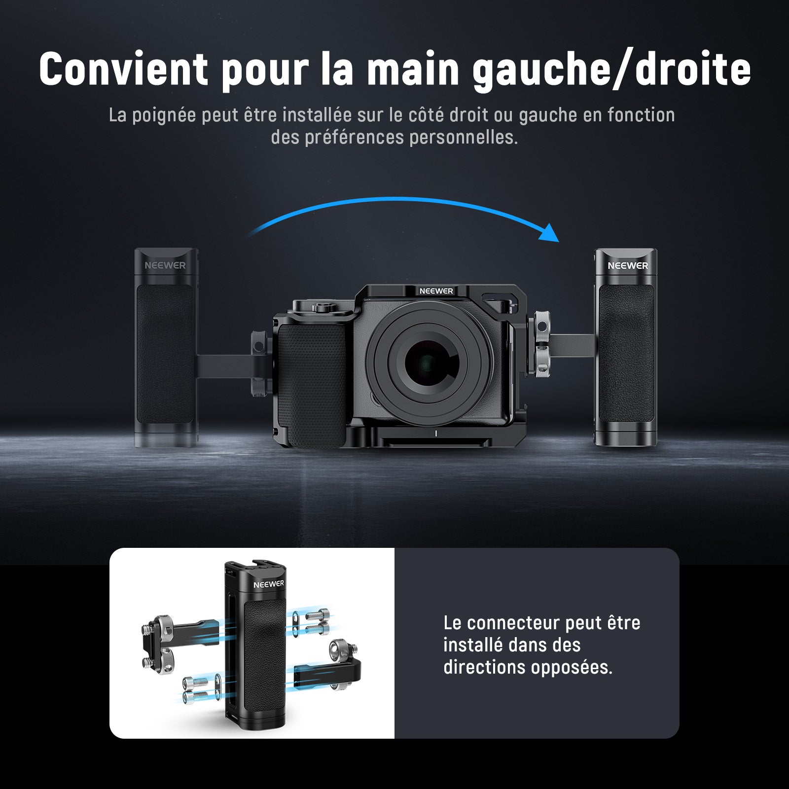 - 【Convient aux mains gauche/droite】 Conçu pour une utilisation à gauche et à droite, le connecteur de la poignée peut être détaché et installé de chaque côté de la cage de la caméra. Comprend également un emplacement pour lanière pour éviter les chutes (lanière vendue séparément)