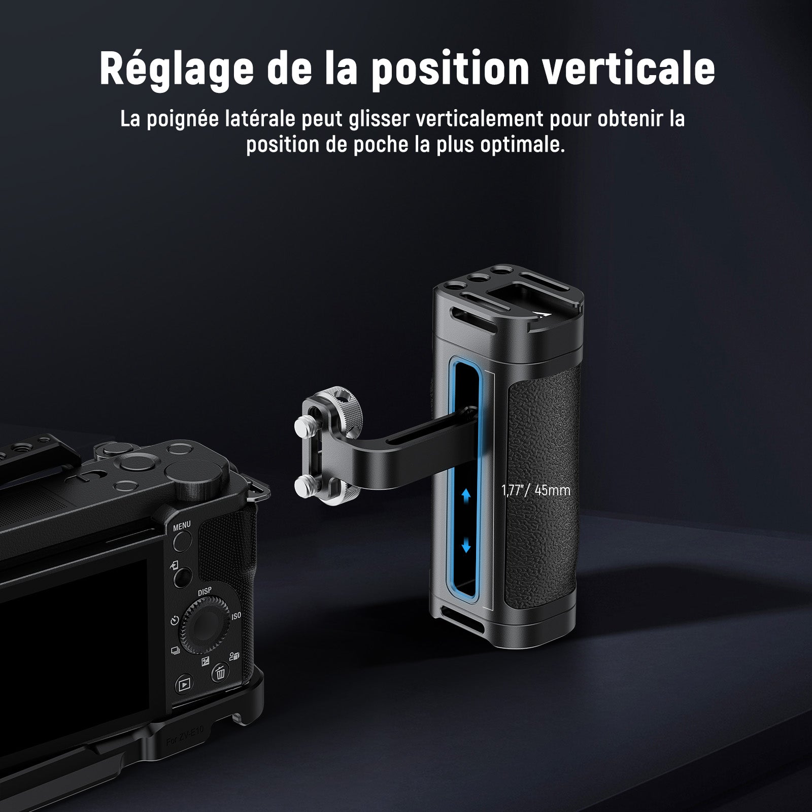 - 【Poignée ergonomique profilée】fabriquée en ABS, PC et alliage d'aluminium, cette poignée latérale pour appareil photo est durable mais légère. La poignée profilée en silicone antidérapante vous offre une prise confortable et ferme pour l'enregistrement en extérieur