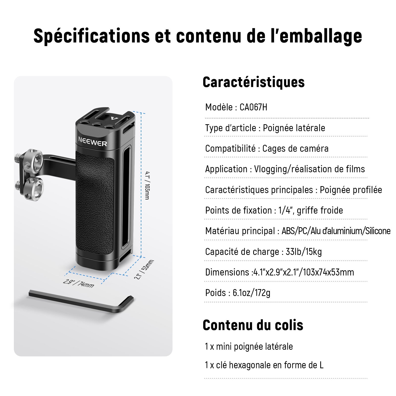 NEEWER CA067H Poignée latérale légère