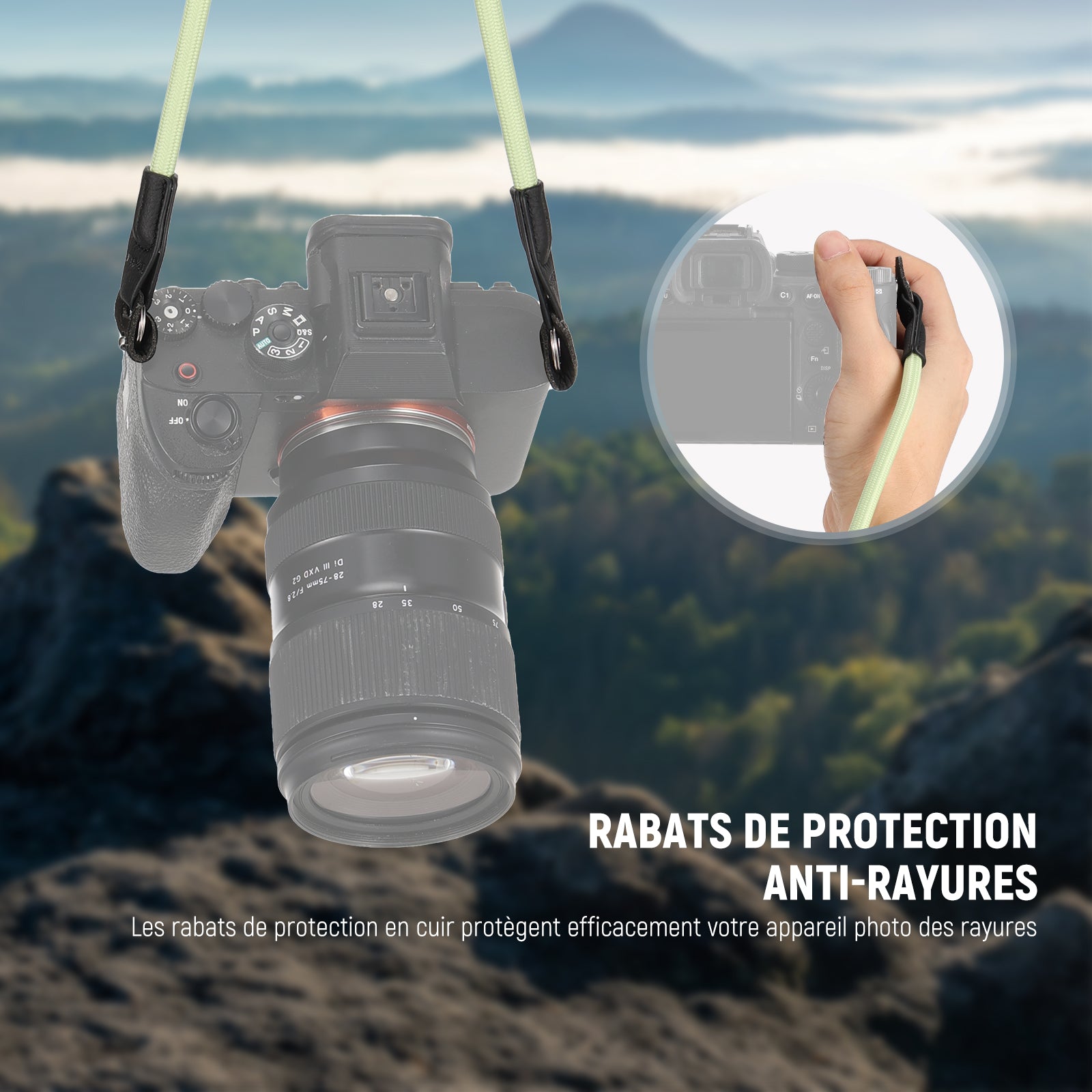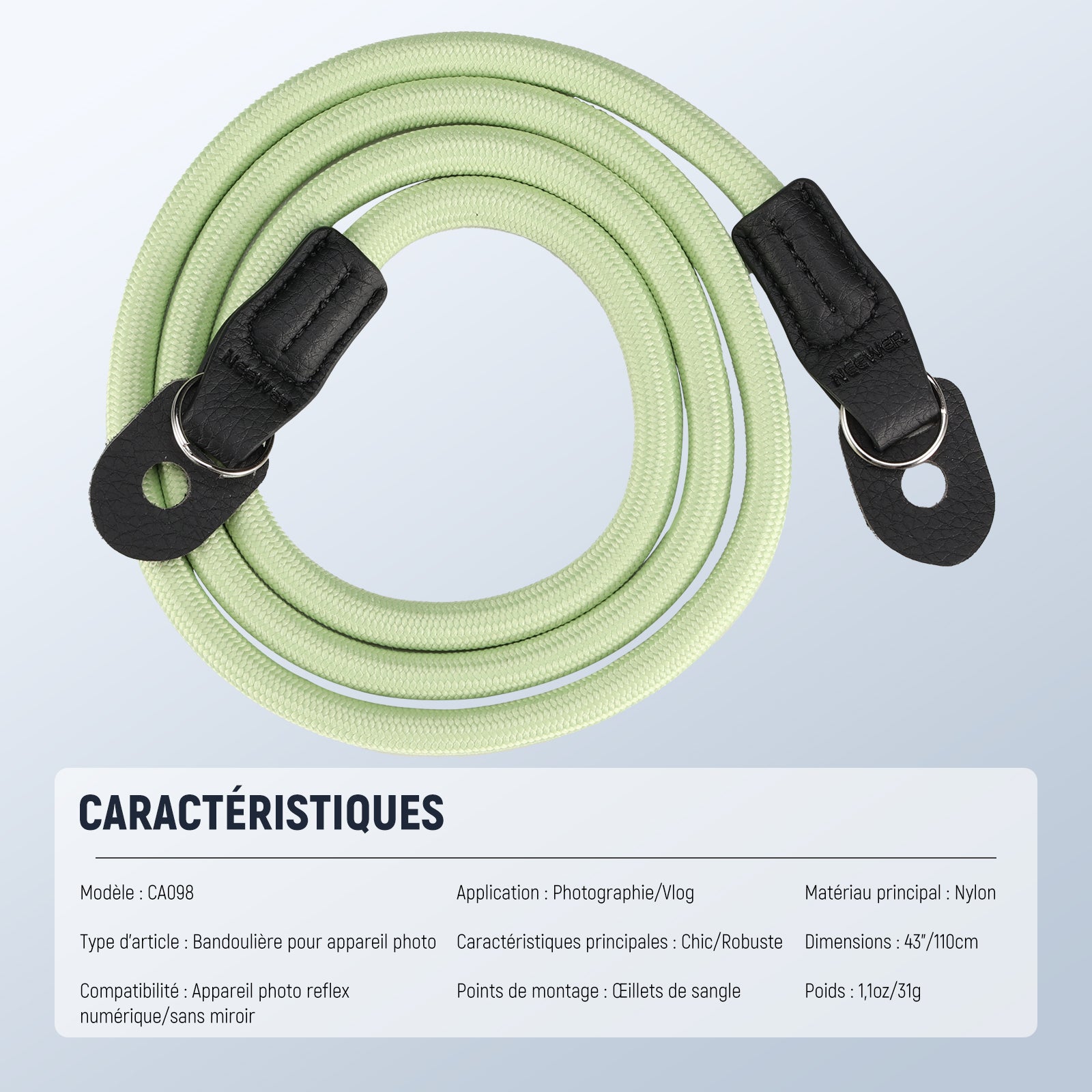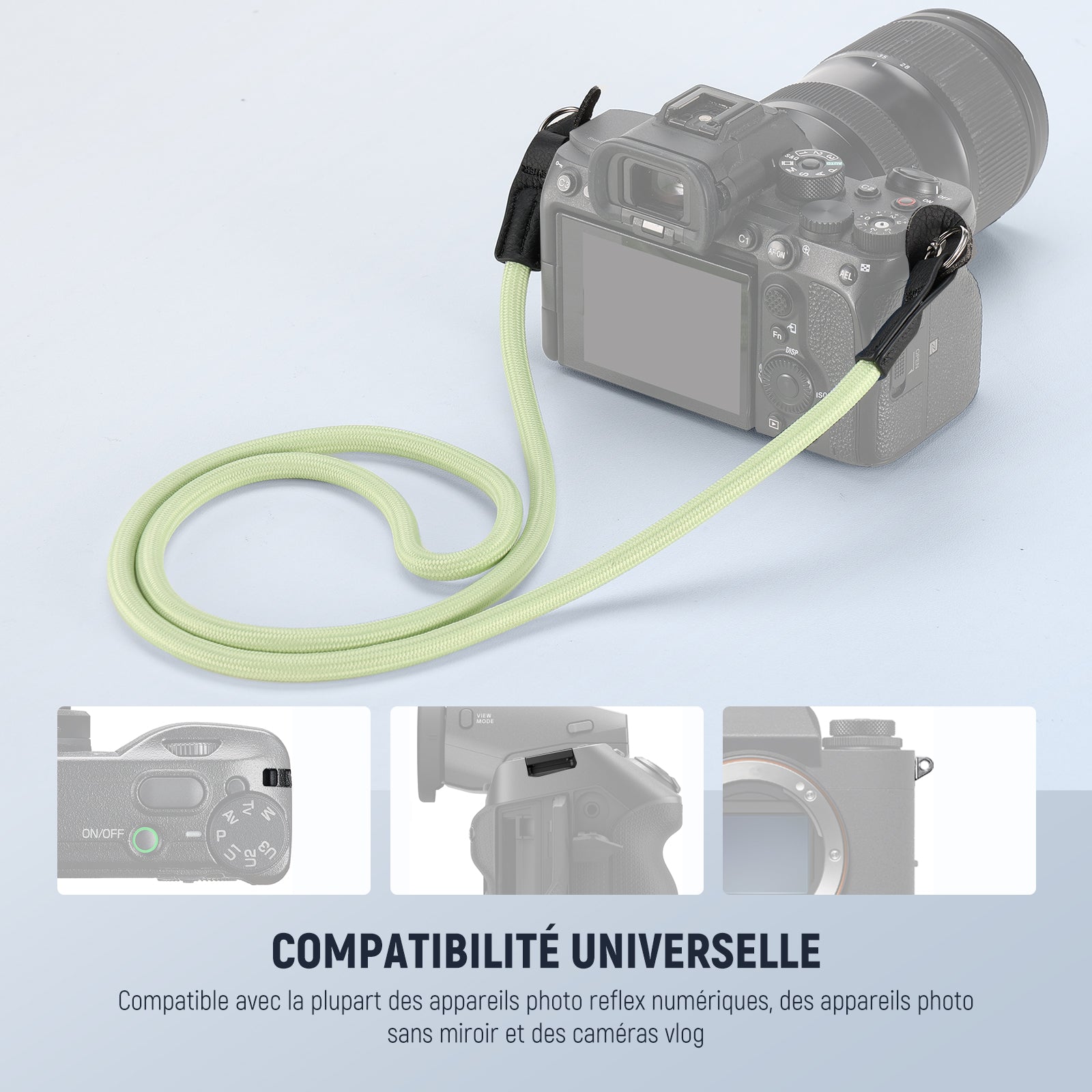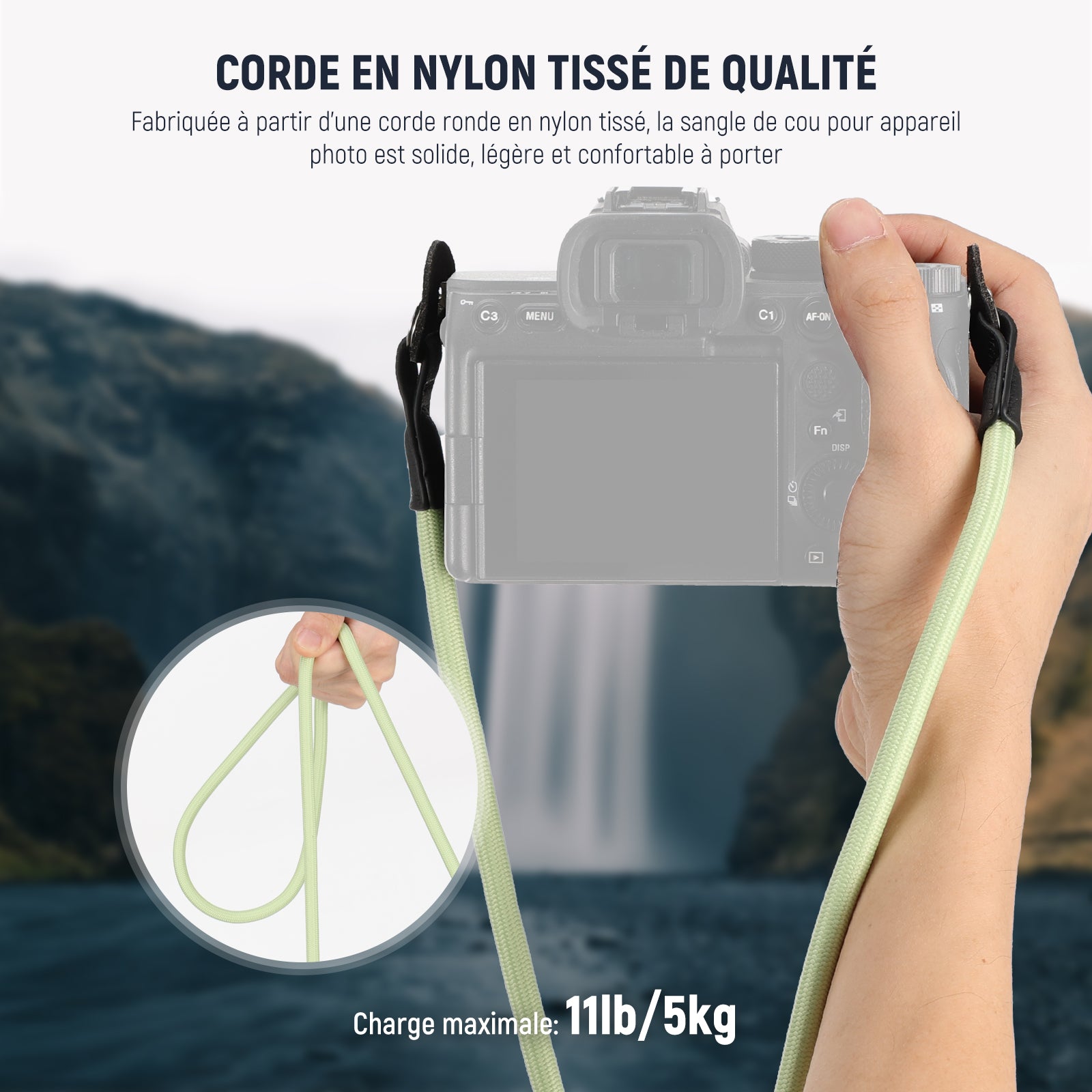 - Corde en nylon tissée durable- Fabriquée à partir d'une corde en nylon tissée ronde, la sangle de cou de l'appareil photo est solide, légère et confortable à porte
