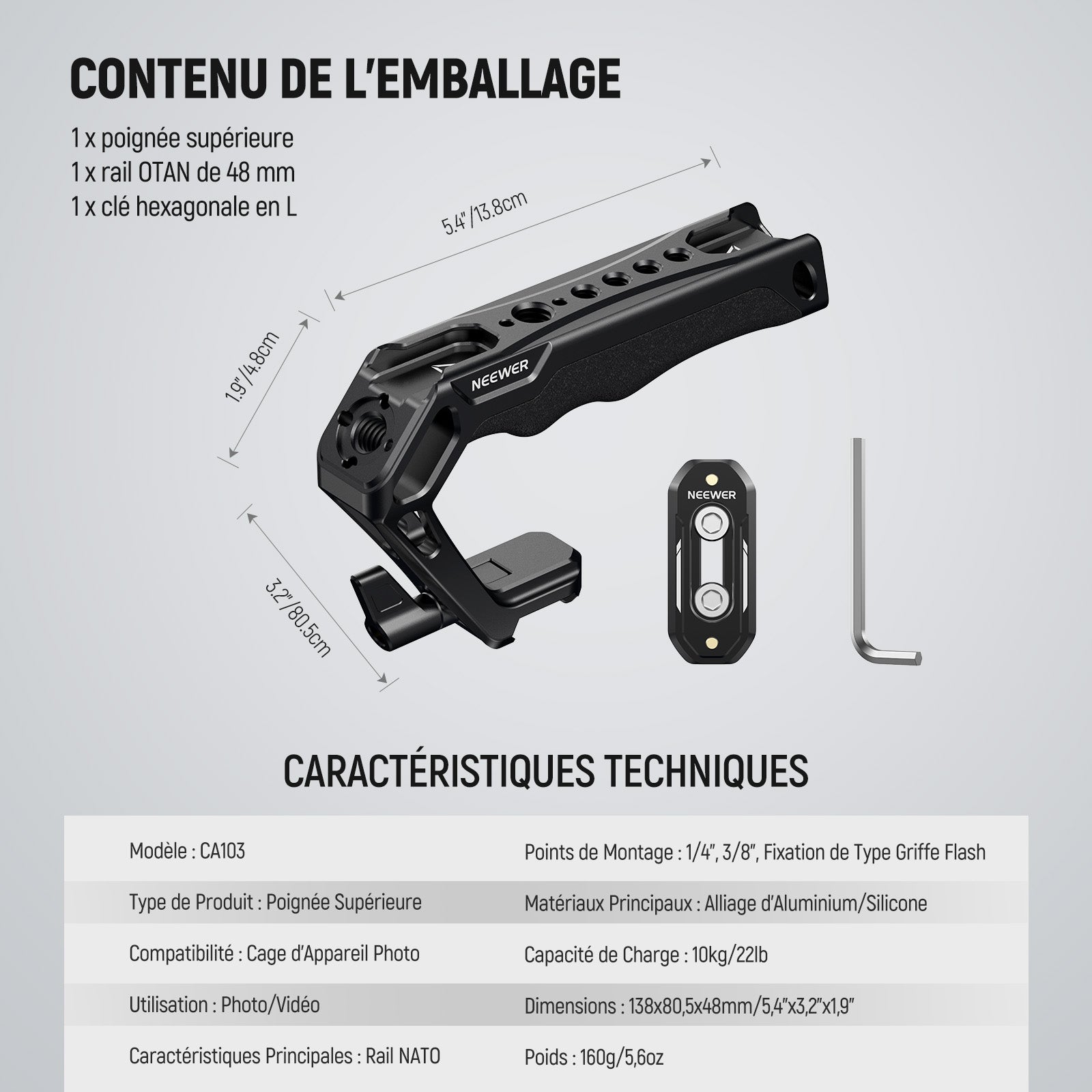NEEWER CA103 Kit Poignée Supérieure NATO avec Étrier NATO à Libération Rapide
