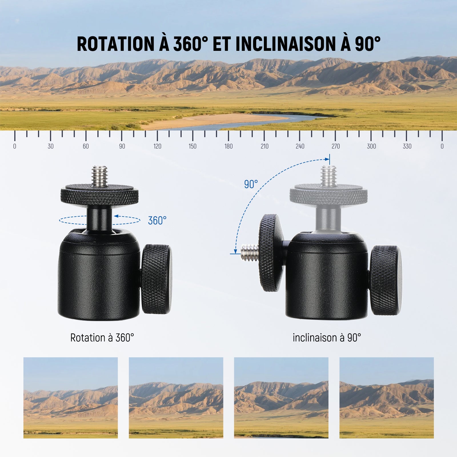- 【Facile à installer】Tournez pour connecter les deux rotules au support de caméra en T et fixez le bras latéral avec des vis papillon, permettant une installation facile sans outils supplémentaires - il suffit de déballer et d'utiliser. Démontable si nécessaire, il est facile à transporter et à ranger.