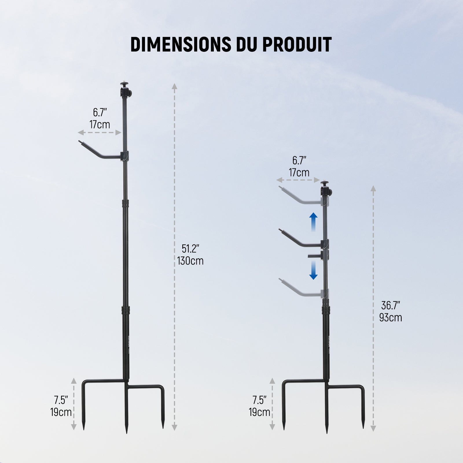 - 【Tête sphérique à 360°,réglable】Le support de caméra de piste est doté d'une tête sphérique à 360° sur le poteau principal et le bras latéral,permettant une rotation à 360° et une inclinaison à 90°.Utilisez une ou 2 tiges de connexion sur le mât principal pour régler la hauteur à 27.6"/70 cm ou 51.2"/130 cm.Surélever la caméra réduit les obstacles tels que les hautes herbes ou les broussailles,améliorant le champ de vision et augmentant les chances de capturer des images ou des vidéos nettes.