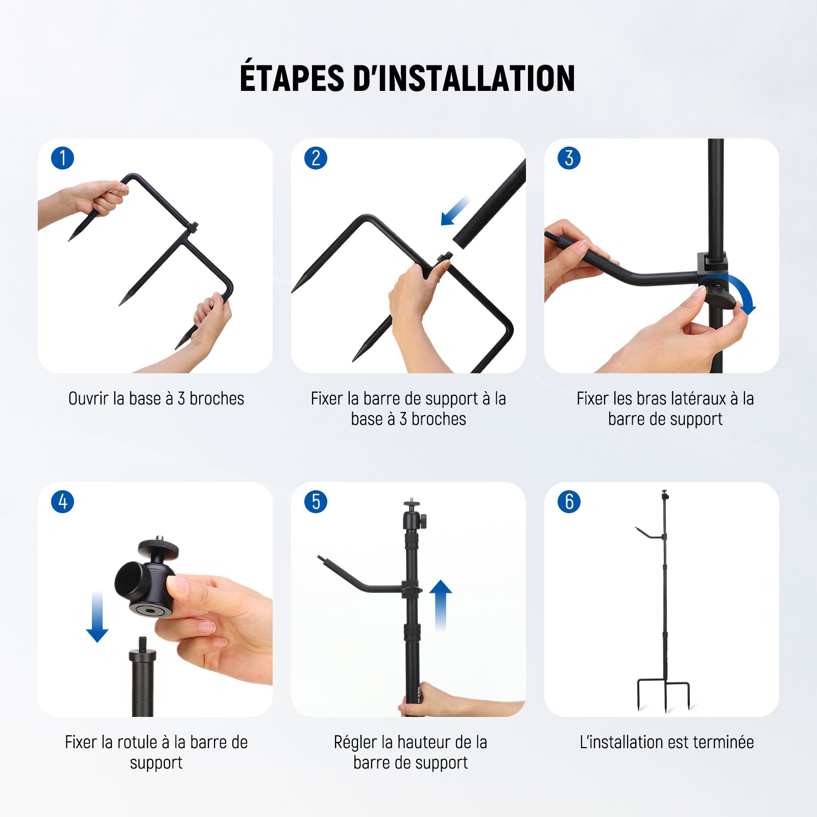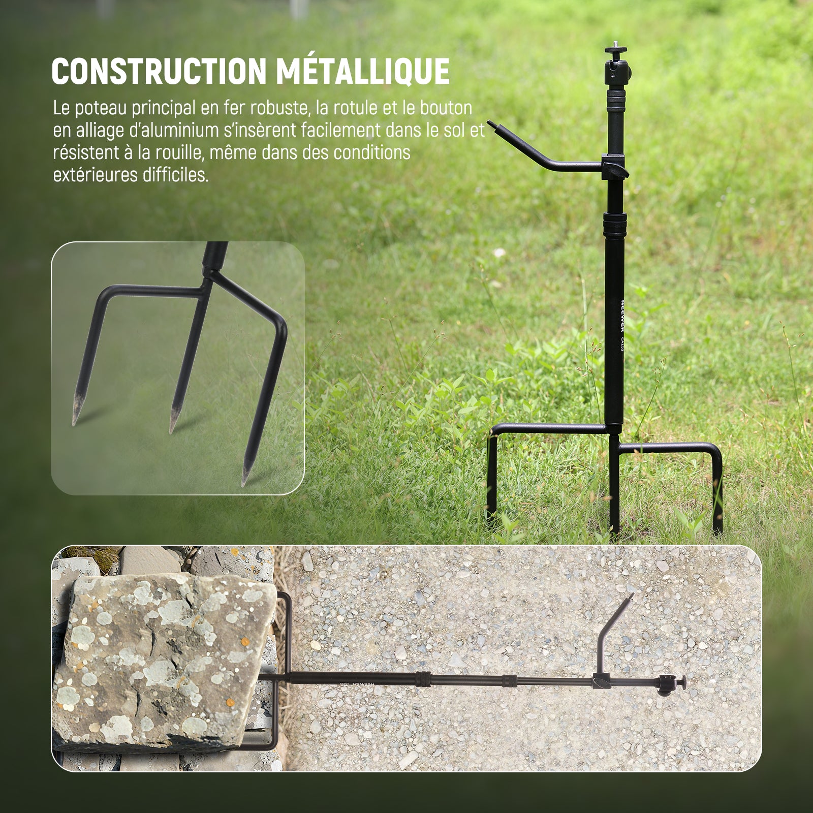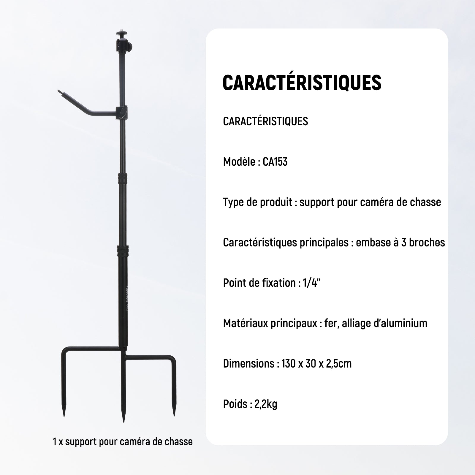 - 【Construction en métal】Le support de caméra de jeu est doté d'un poteau principal en fer robuste et d'une rotule et d'un bouton en alliage d'aluminium, résistant à la rouille dans des conditions extérieures difficiles. Son design entièrement noir permet une dissimulation discrète et minimise les perturbations pendant le tournage.