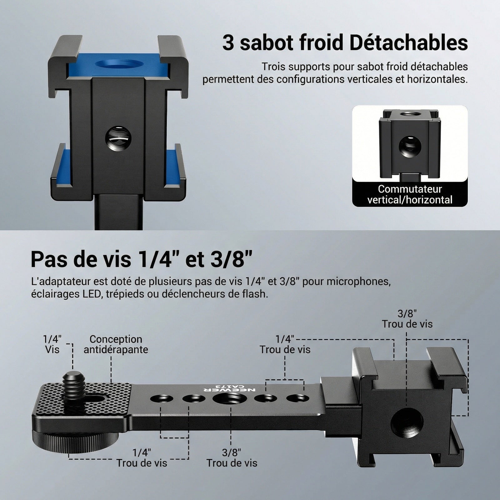 NEEWER CA173 Plaque de montage triple griffe porte-accessoire