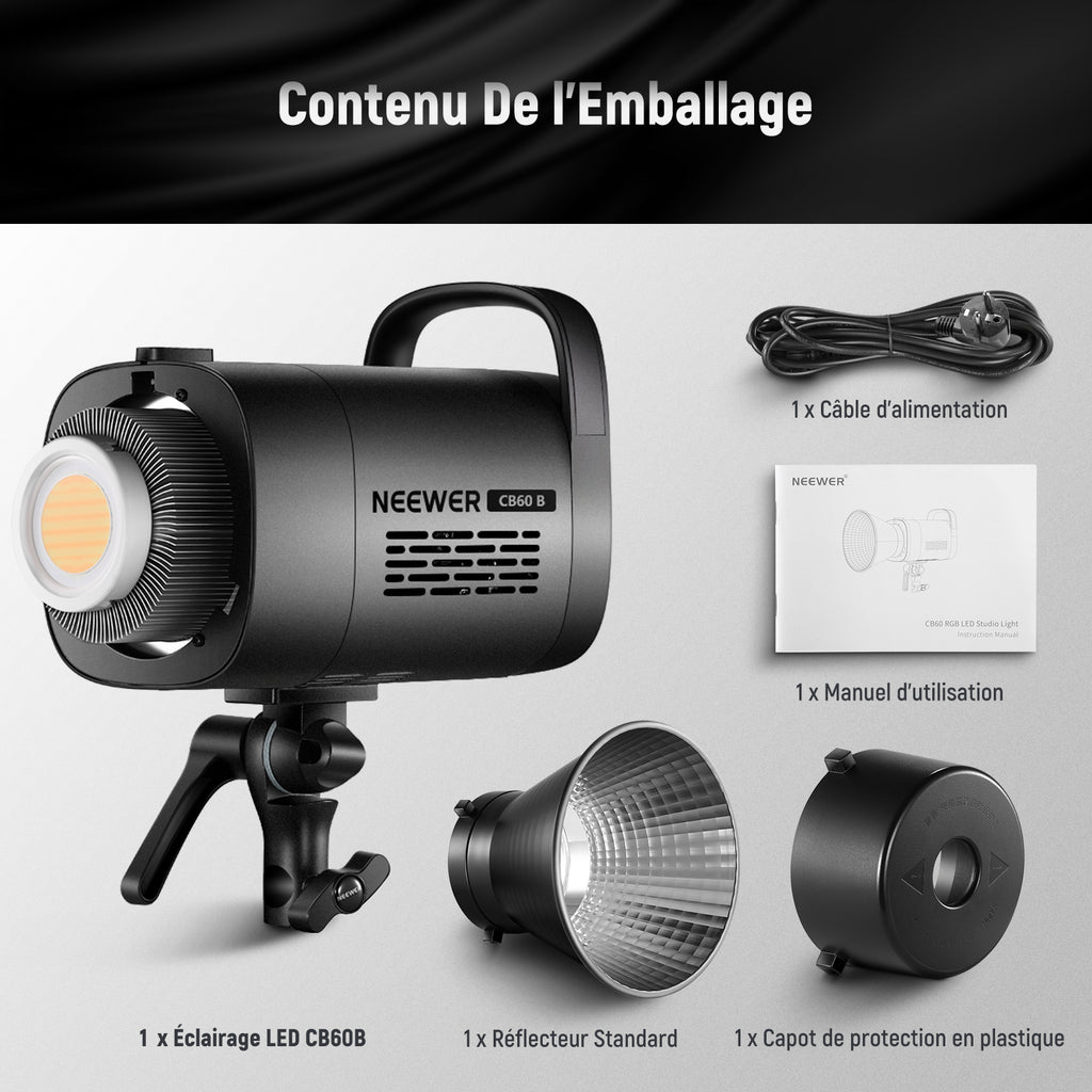 - Lumière vidéo LED polyvalente à sortie de 70W- Avec une puissance de sortie de 70W et un éclairement maximal de 34 000lux à 1m,cette lumière continue bicolore CB60B (prise EU) fonctionne parfaitement comme lumière d'appoint ou lumière principale pour la vidéographie,la réalisation de films et diffusion en direct.Construit avec une coque en alliage d'aluminium robuste et suffisamment petit pour être transporté pour un éclairage rapide.Prise en charge du micrologiciel OTA mis à jour