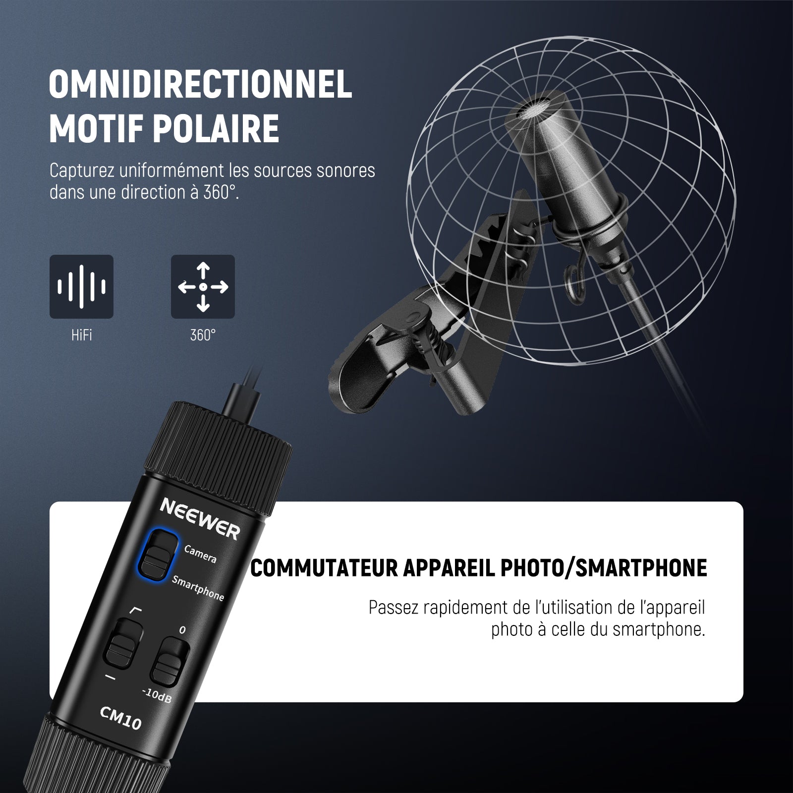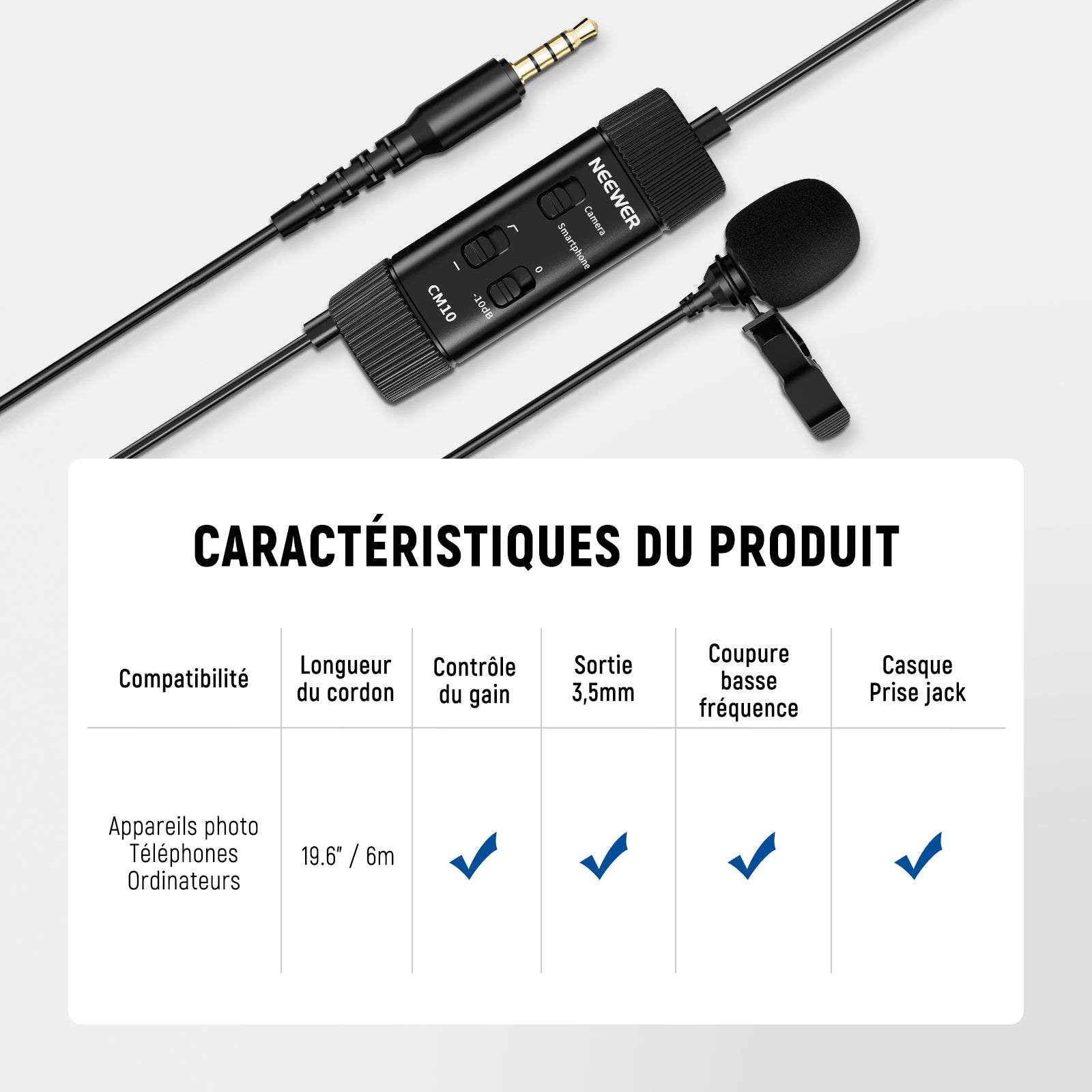 NEEWER CM10 Micro-cravate Lavalier Plug & Play 3,5 mm TRRS pour Appareil Photo/Smartphone