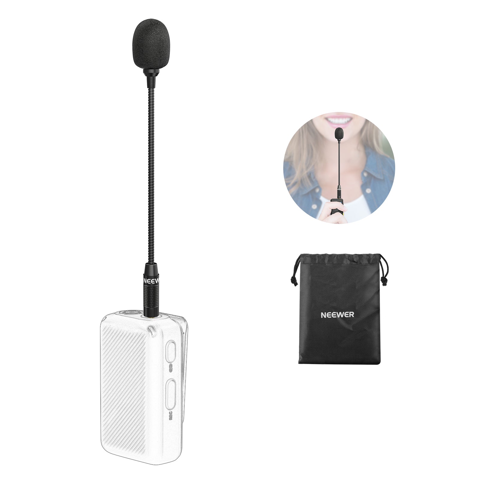 - Micros sans fil avec bras flexible et housse en mousse : la longueur totale est de 16 cm (14,5 cm sans la tête TRS de 3,5 mm). Le design flexible du microphone à condensateur permet au microphone sans fil de se plier et de se positionner comme il le faut, assurant que le son clair est capturé dans toutes les situations. Doté d'une perche flexible et d'un micro en métal robuste, ce design comprend une housse en mousse coupe-vent qui protège le microphone de la poussière, de l'humidité et des dommages causés par la corrosion